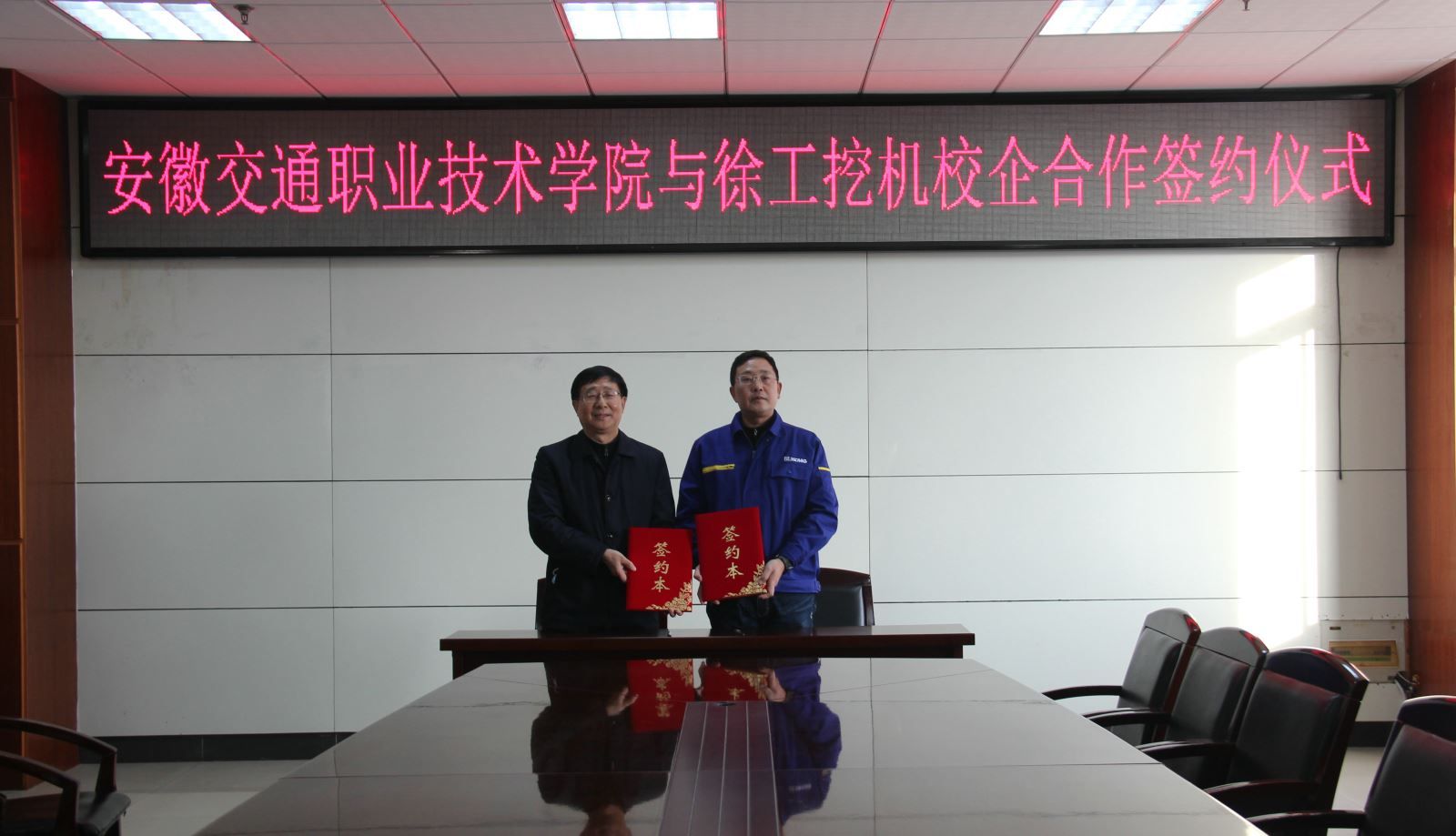 1月14日下午,学院与徐工挖机举行校企合作签约仪式。副院长王丰胜、徐工挖机营销公司副总经理雷启明、营销公司华东营销中心总监朱俊峰、同盟军商学院院长助理张松松、安徽中建机械科技有限责任公司总经理储晓林出席。汽车与机械工程系领导及部分教师、徐工挖机相关工作人员参加签约仪式。