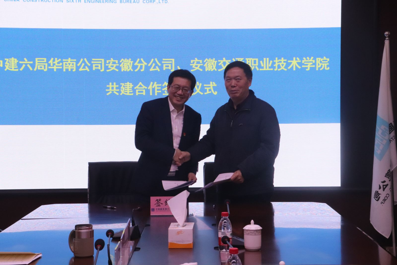 3月18日下午,学院与中建六局华南公司安徽分公司举行校企合作签约仪式。院长张国栋、学生处处长喻谨、土木工程系主任王常才、副主任王守胜、中建六局安徽分公司总经理郭向阳、安徽区域公司总部党支部书记、办公室主任方建军及分公司相关部门负责人参加此次签约仪式。