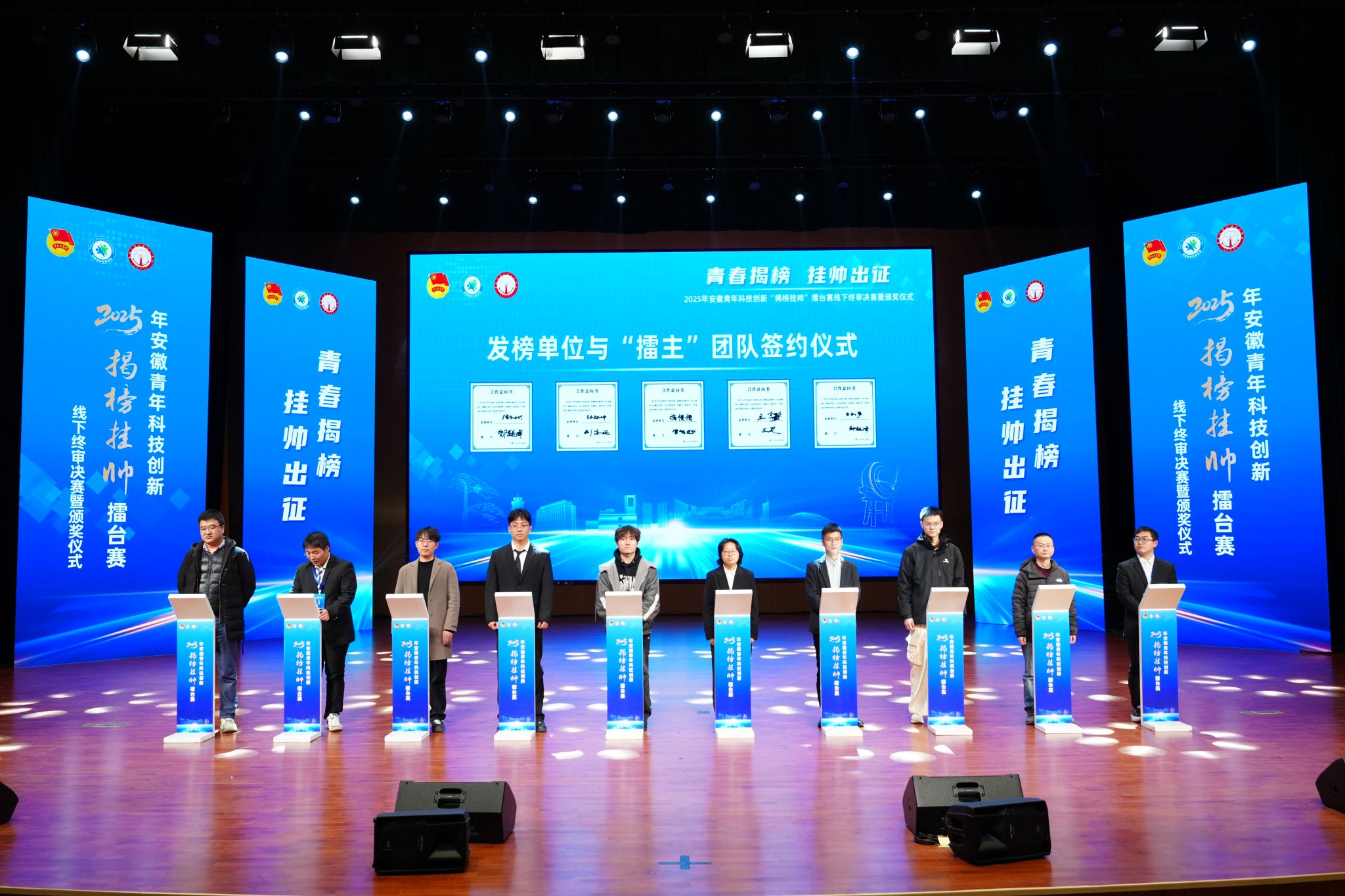 闭幕式上安徽青年科技创新“揭榜挂帅”擂台赛“擂主”团队代表进行了现场路演。
