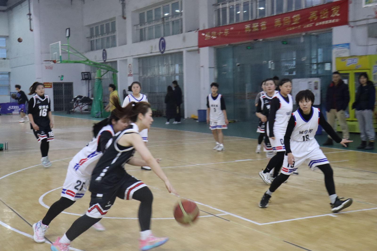 这是一场激烈的角逐。赛场上,两队队员流利的转身,漂亮的传球,精彩的投球,灵动的跑位,强悍的三步上篮.....无不展现他们绝佳的球技,赢得场外的阵阵喝彩声。