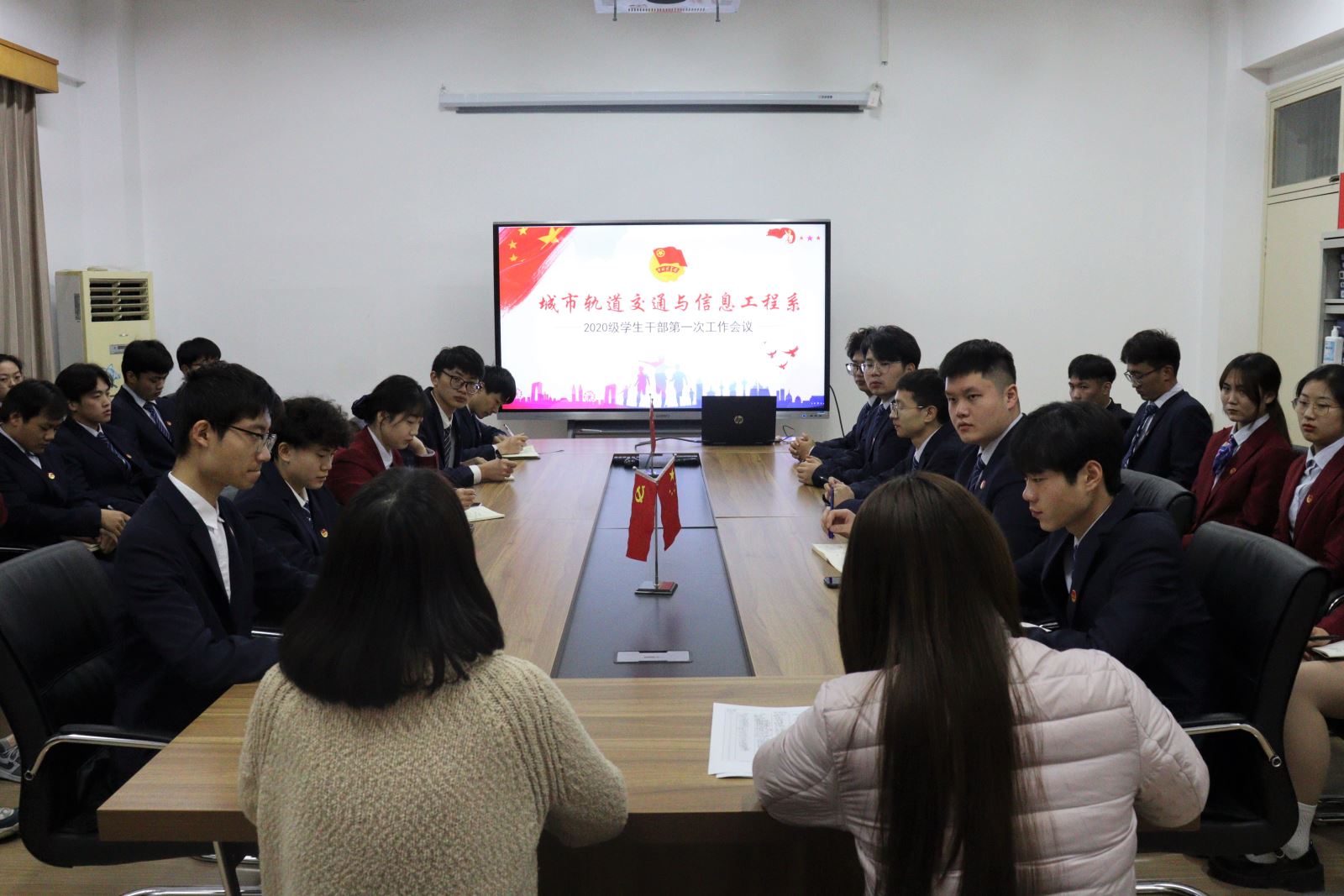 为落实共青团中央、教育部、全国学联联合下发的《关于推动高校学生会深化改革的若干意见》,规范学生干部行为准则,进一步提升学生干部素养,增强学生干部工作能力与服务意识,1月4日晚,城信系团总支20级学生干部第一次工作会议在图书馆一楼会议室举行,城信系团总支负责人徐海霞、系学管老师李思琪、以及全体城信系学生会干部参加了本次会议。