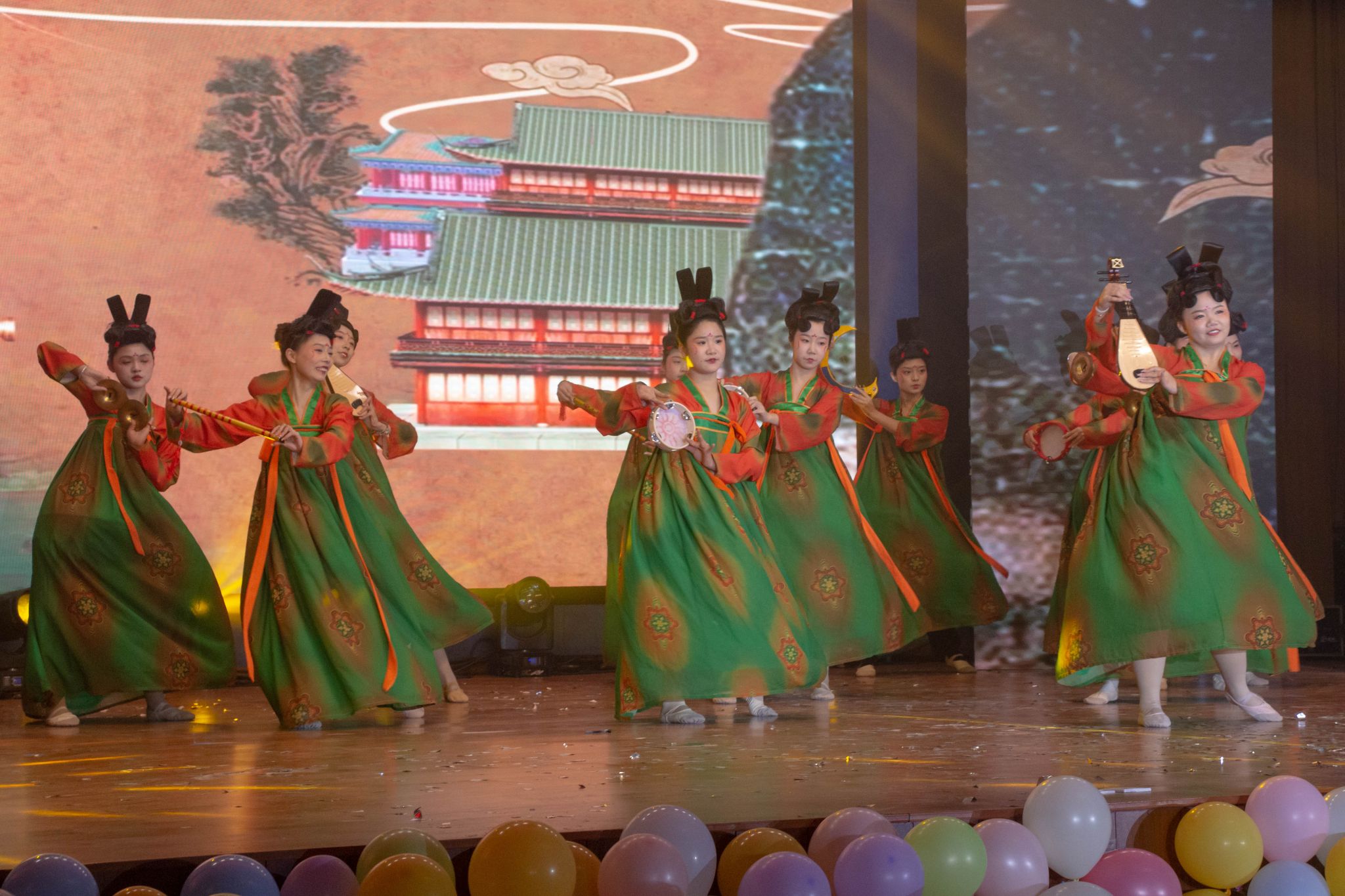 第三篇章“筑梦前行”,展现广大师生自强不息的精神风貌,勉励新生努力拼搏。师生朗诵《你好,辅导员》汇聚着一股股源自爱的暖流,引领着学子不断前进。舞蹈《唐宫夜宴》旋转跳跃间流淌出多彩的生命力量。晚会在师生集体大合唱《我们都是追梦人》中圆满落幕。