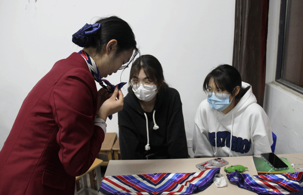 活动现场,城信系的礼仪志愿者为同学们介绍了正装穿着规范、丝巾、打领带、优雅坐姿站姿等礼仪知识,并现场完成了仪态礼仪、递送物品礼仪、握手礼、鞠躬礼等项目,展示了良好的礼仪技能水平。培训以知识问答的形式和同学们展开互动,并在讲解完成后一对一帮助同学们掌握要领,加深对文明礼仪式知识的认识和理解,规范自身的行为举止,切实提升志愿服务质量和水平。同学们积极参与,学习热情高涨、气氛热烈,优雅端庄的姿态和大方得体的举止展示了城信学子自信大方的精神风貌。