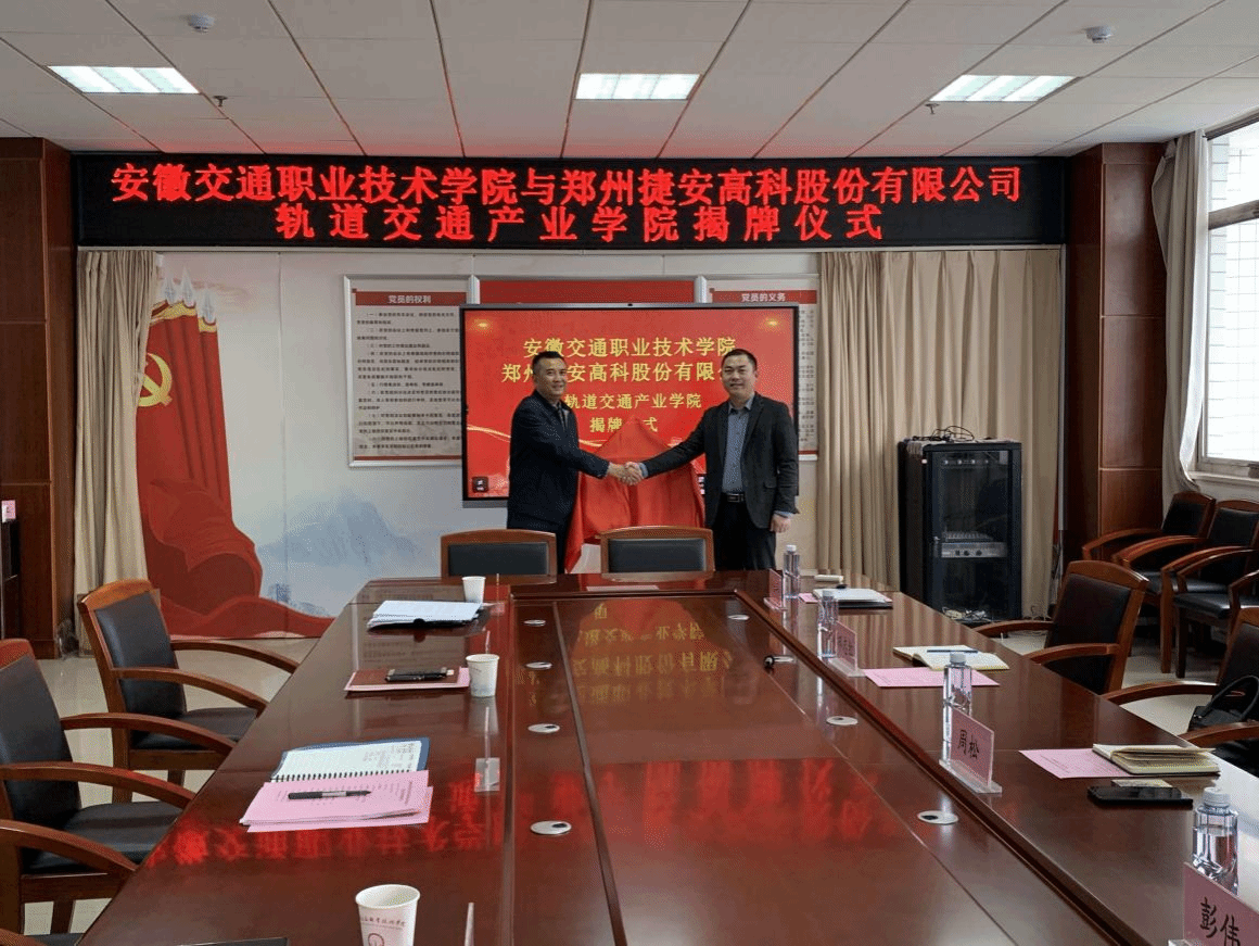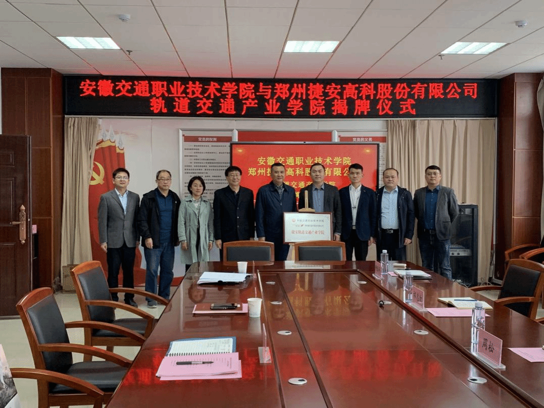 为进一步加强校企合作,推进产教融合,10月13日,学院与郑州捷安高科股份有限公司在信息楼8楼会议室举行共建人工轨道交通产业学院揭牌仪式。郑州捷安高科股份有限公司销售副总经理周松、总经理助理祁志红、销售区域总监徐陆平、销售大区经理彭伟,院党委书记孙顺利、副院长王丰胜、城信系党总支书记汪倩、系主任李锐、教研室主任李志成出席本次仪式。会议由王丰胜主持。