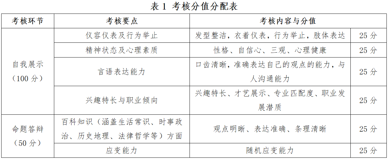 ② 考核方法:考生自我介绍、专业爱好及职业倾向性陈述、才艺展示等。