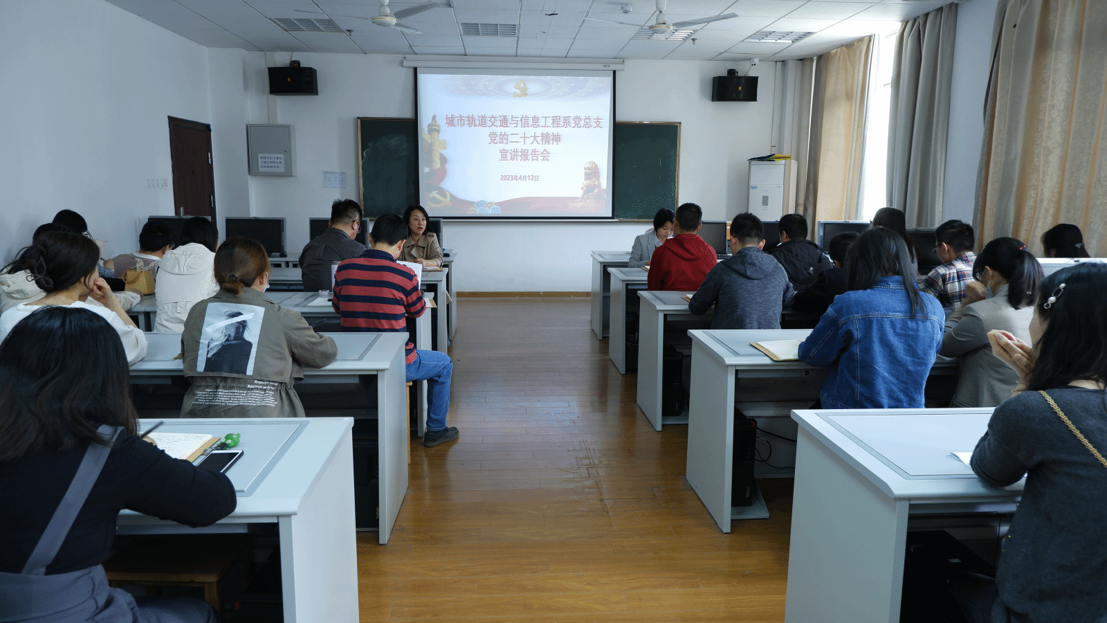 为深入学习宣传贯彻党的二十大精神,4月12日下午,城信系党的二十大精神宣讲报告会召开,系党总支书记汪倩、系副主任(主持工作)兰清群分别作专题宣讲,系全体教职工参加宣讲会。