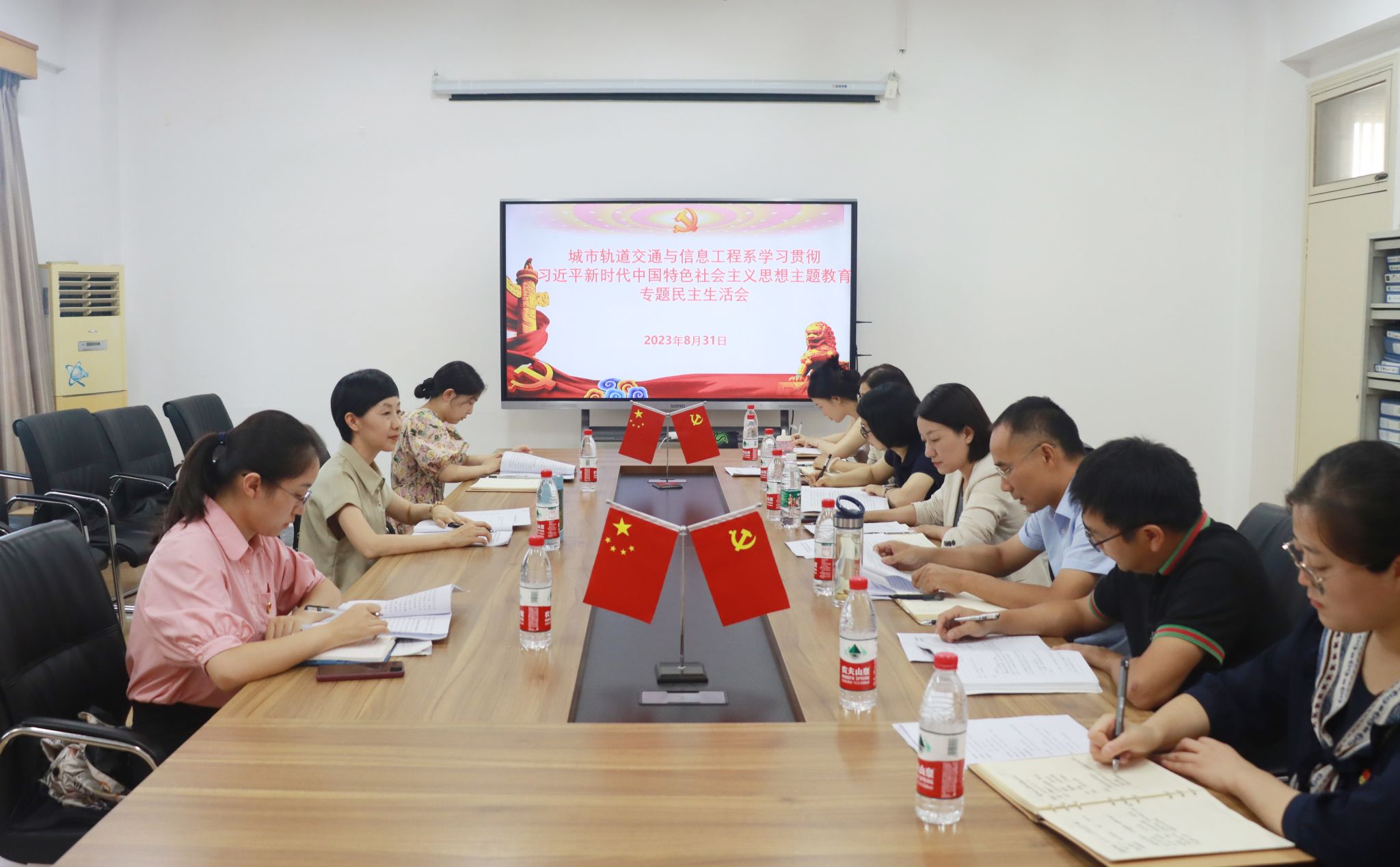 根据学院统一部署,8月31日下午,城信系党总支召开学习贯彻习近平新时代中国特色社会主义思想主题教育专题民主生活会。院党委委员、学生处处长喻谨,院办公室、组织人事处人员到会指导,城信系党总支书记汪倩主持会议。