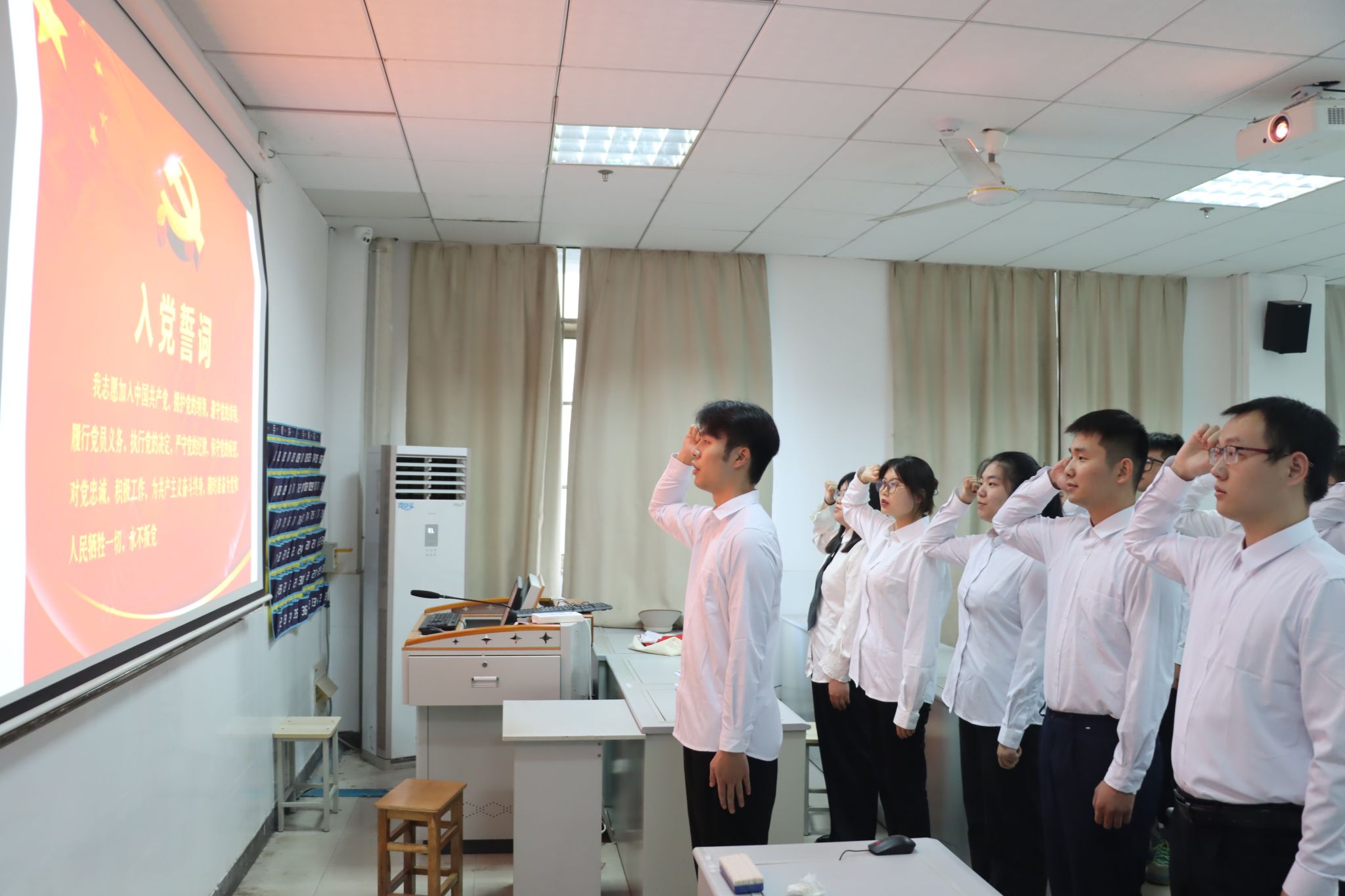 会议结束后,金梦晗等12名发展对象面对党旗进行了庄严宣誓,表达了他们坚定永远跟党走的决心,不忘初心,牢记使命,积极弘扬伟大建党精神,继承和发扬党的优良传统,在今后的学习工作中,坚定目标、严格要求自己,以自身实际行动积极践行党的二十大精神,争做合格党员。