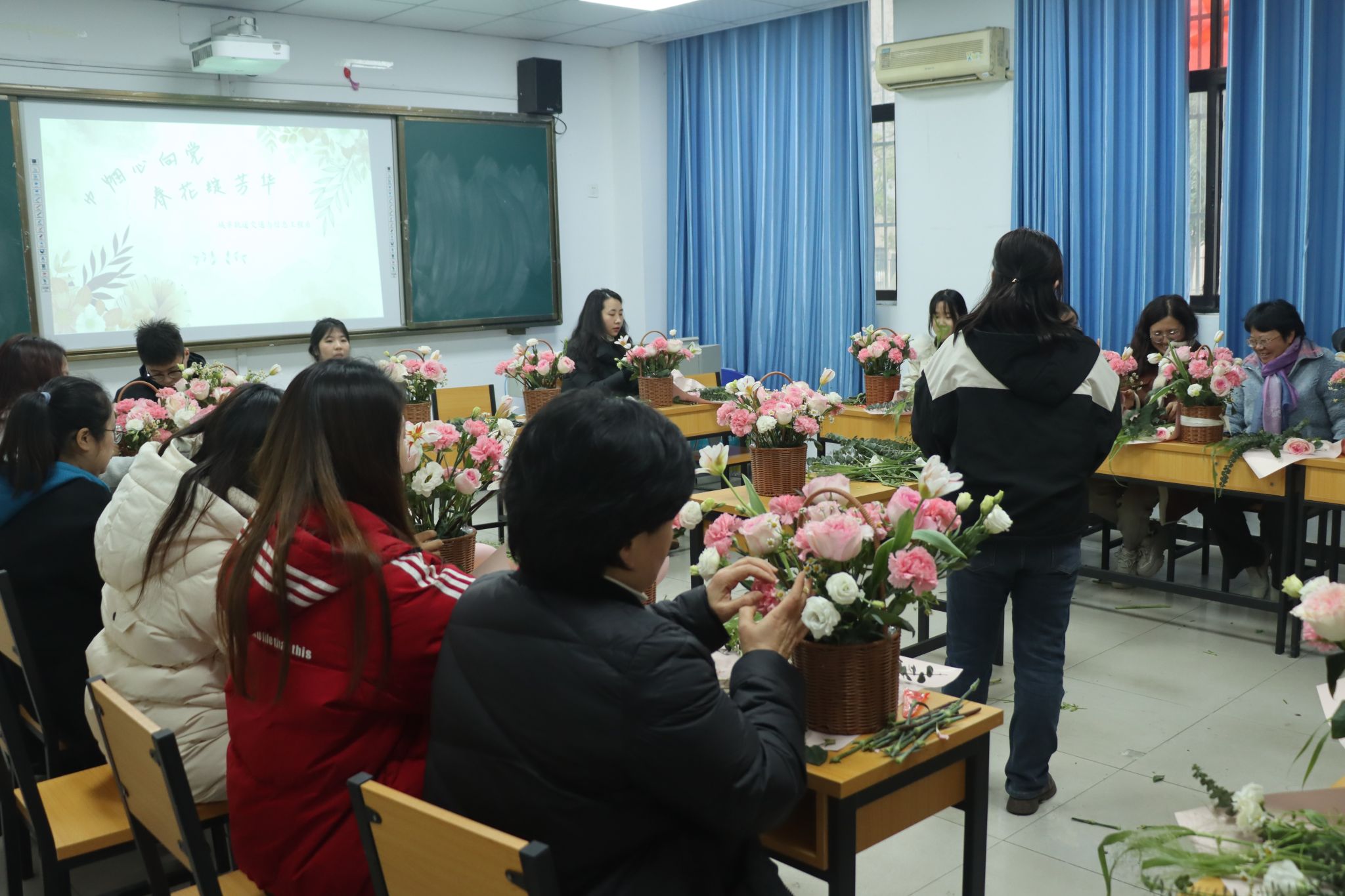为庆祝“三八”国际劳动妇女节的到来,丰富党员老师精神文化生活,展现新时代巾帼风采,3月4日下午,城信系党总支举办“巾帼心向党 春花绽芳华”三八妇女节插花主题党日活动,系全体女教职工参加。