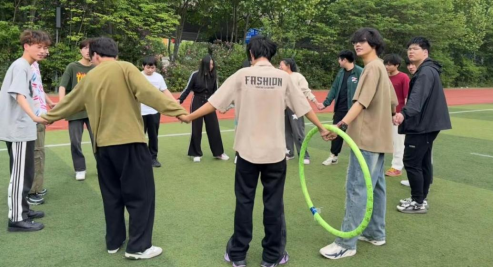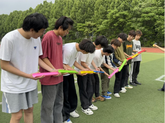 本次活动在春日暖阳下拉开序幕。在经过热身小游戏后,又开展了“一圈到底”“轨道传球”“珠行万里”等一系列生动又有趣的活动。在各项目负责人的带领下,每一位同学都热情参与、团结协作、克服困难、挥洒汗水,操场上回荡着欢声笑语,现场气氛达到高潮。