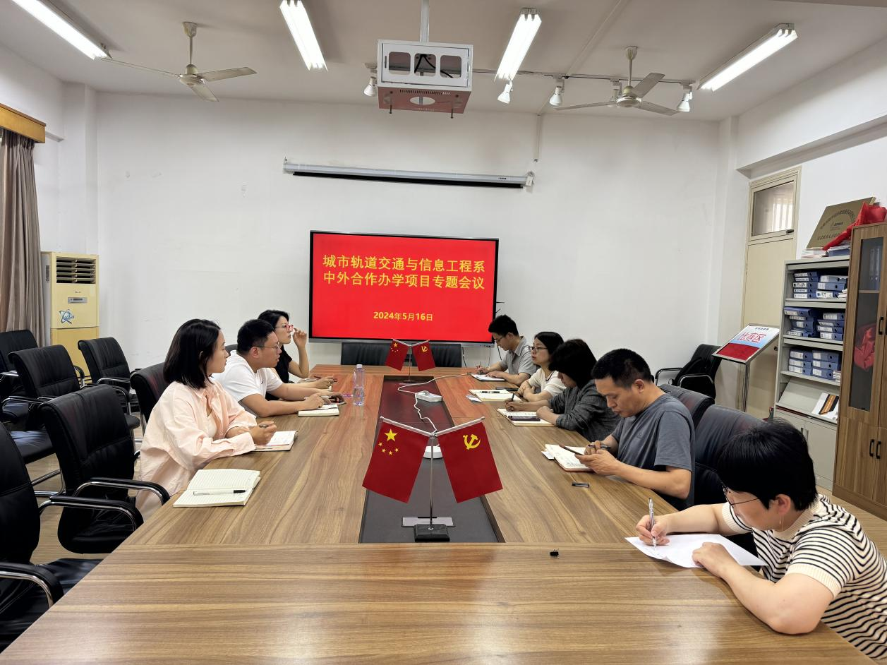 为进一步提升学院整体教育教学水平,推进学校中外合作办学高质量发展,5月16日下午,城信系于系会议室召开中外合作办学项目专题会议,系党总支书记汪倩、副主任(主持工作)兰清群、教务处副处长魏化永、专业教师周岩及中外合作项目负责人张垚、宋滕滕,辅导员梁玉倩、苏瑞等参会。会议由汪倩主持。