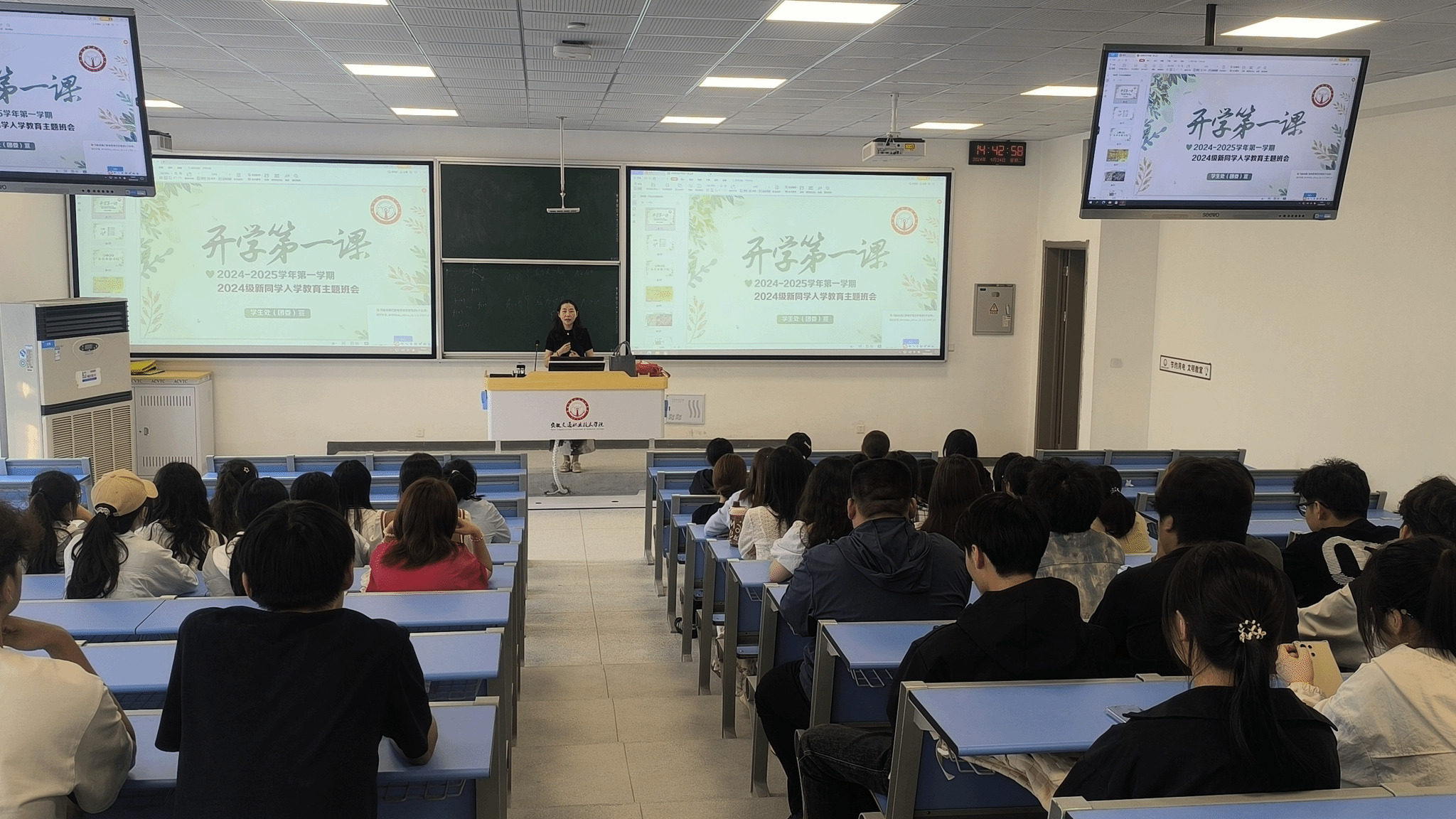 9月23日,全系各班级组织开展了开学第一课,对学生进行了入学教育和安全教育。各班辅导员老师向新生们介绍了新校区的基本情况,全面加强了安全教育,增强广大新生的安全意识,提升安全防护能力。
