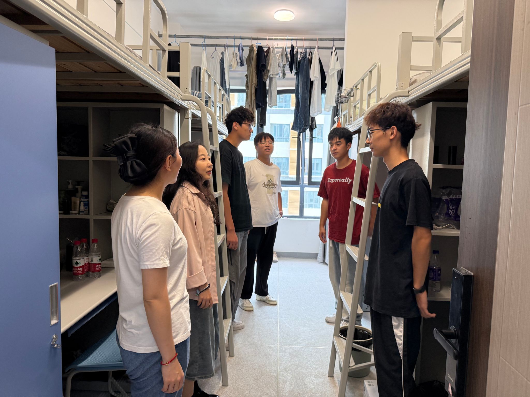 9月22日报到当日,城信系各党支部在迎新点设立“党员先锋岗”,先锋党员们佩戴党员徽章,积极参与到迎新志愿服务活动中。城信系学生党支部以“党员+团员”模式,发挥党建带动团建作用,使多名党员、入党积极分子、共青团员均参与到志愿服务活动当中,大家分工有序、各司其职、相互协助,引导新生完成报到流程,热心解答新生疑问,为新生保驾护航,彰显党员风采。当晚,支部党员走访新生宿舍,了解新生思想动态、生活状况及入住情况,传递学院温暖与关怀。