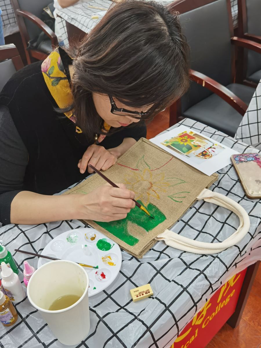 为庆祝第112个“三八”国际劳动妇女节,丰富女教职工文化生活,倡导健康生活理念,促进教职工沟通交流,营造昂扬向上的校园文化,3月12日下午,院工会、院女教职工委员会举办“匠心巧手 美丽绽放”DIY麻布包活动。