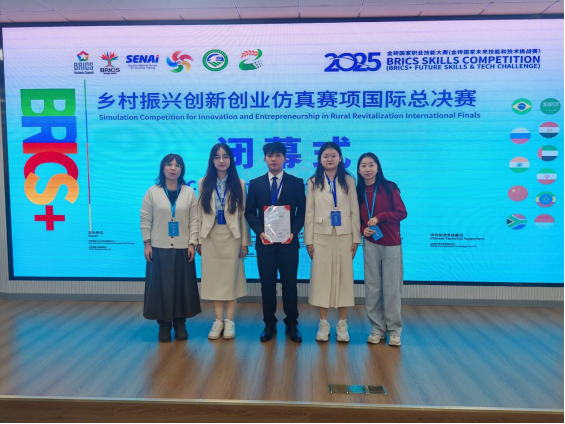 11月17日,2025金砖国家职业技能大赛乡村振兴创新创业模拟仿真赛项国际总决赛在鄂尔多斯生态环境职业学院圆满落幕。我校经济管理学院学生徐澍、王紫慧、周孜盈凭借扎实的专业功底与默契的团队协作,历经省级及区域选拔赛的层层筛选,在决赛中脱颖而出,成功斩获国际总决赛二等奖,充分展现了我校学子在乡村振兴领域的卓越创新能力与扎实实践水平,为学校赢得了荣誉。