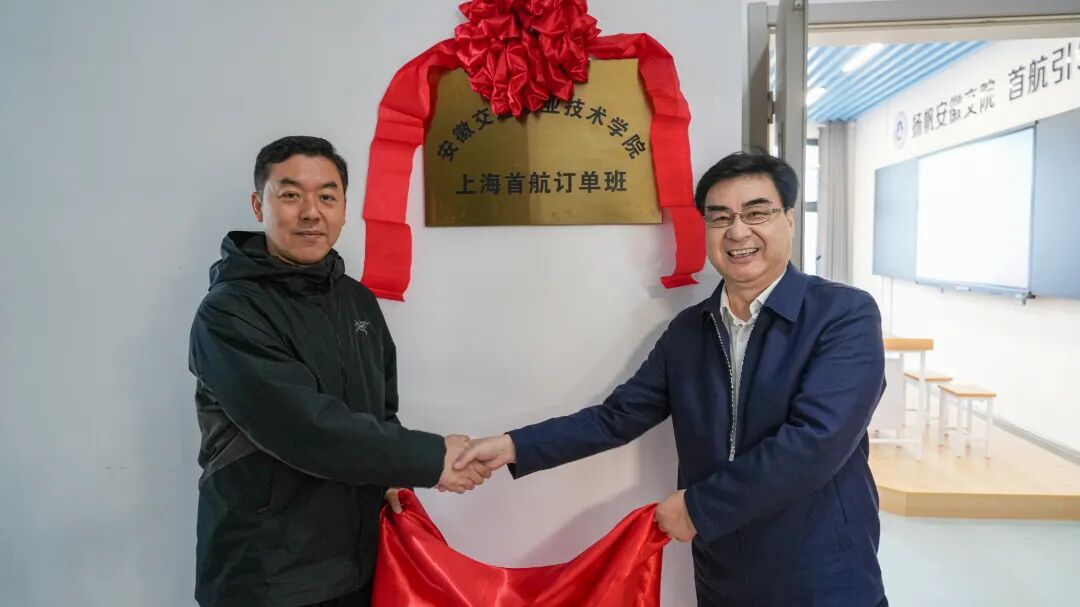 随后,在全体与会人员的见证下,孙晓雷和韩朝林代表校企双方共同为“上海首航订单班”教室揭牌并签订捐赠协议,订单班学生代表向企业代表赠送鲜花表达感谢。