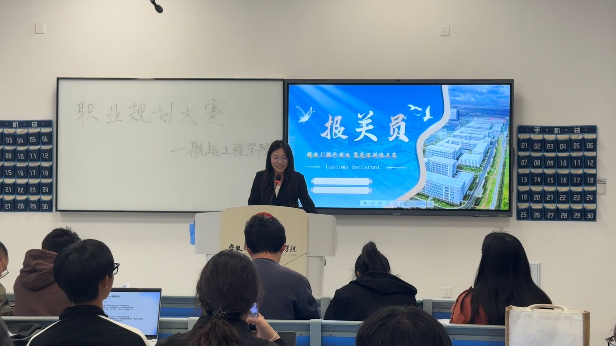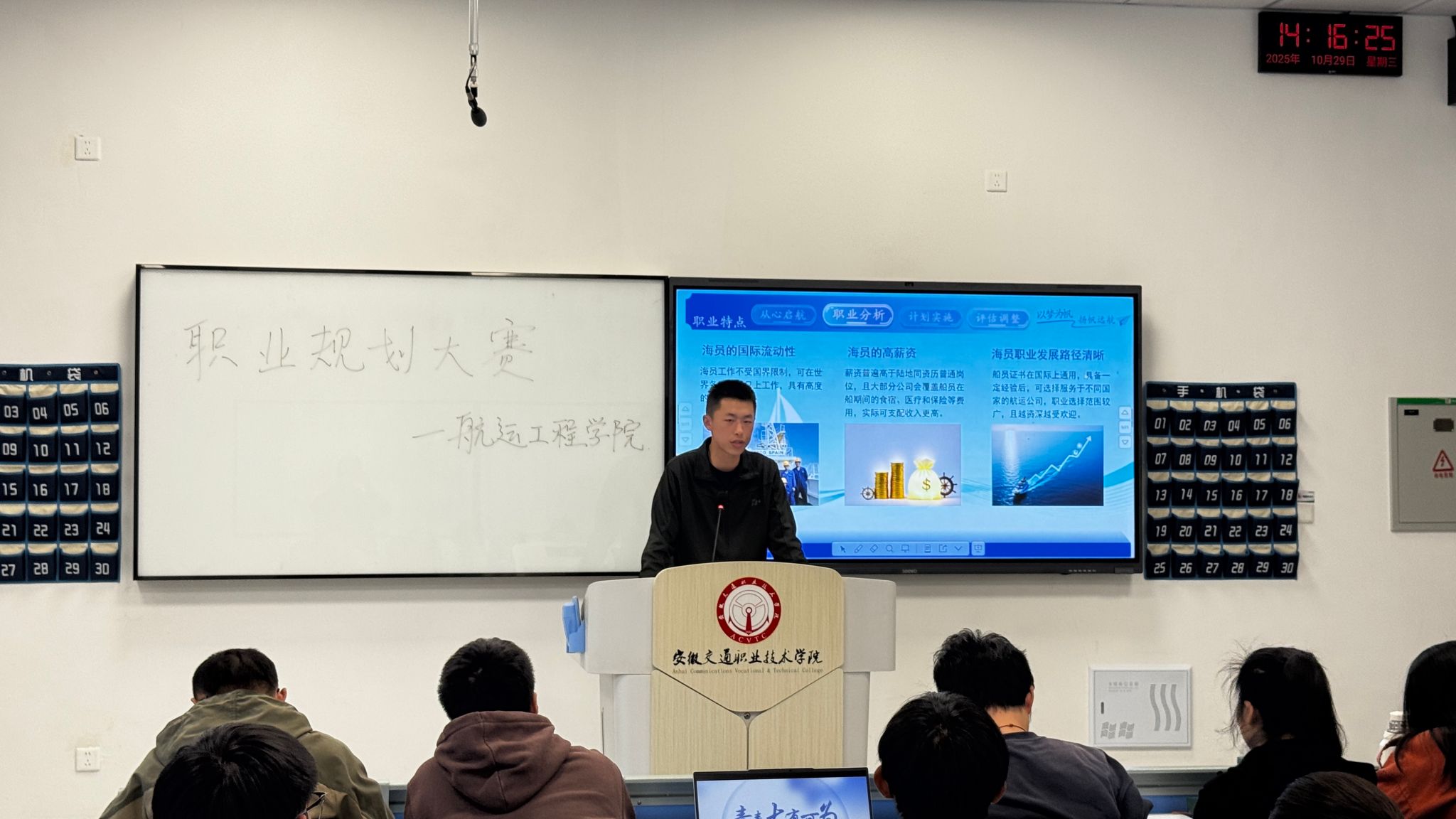 比赛中,16名选手通过PPT展示、现场答辩等形式,从自我认知、行业分析、目标设定、实施计划等维度,生动呈现个人职业生涯规划蓝图。评委老师围绕规划的逻辑性、行业适配度及个人特质匹配度进行专业点评,既肯定选手们对航运领域的深入思考,也针对规划细节提出优化建议,帮助选手进一步完善职业路径。