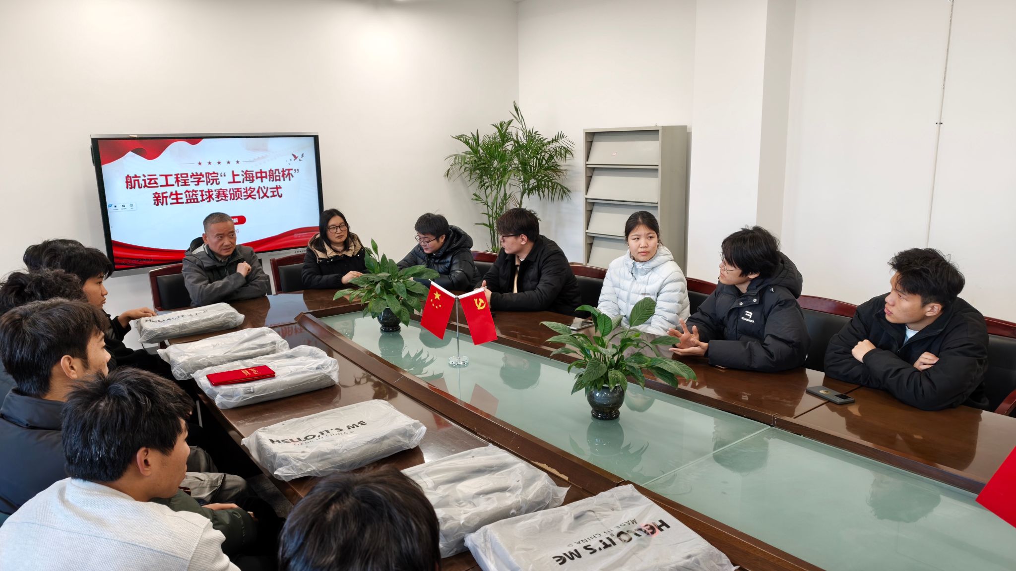 颁奖嘉宾为获胜队伍颁奖并勉励学子们发扬拼搏奋斗的精神,德智体全面发展。上海中船海员管理有限公司为获奖队员每人提供了精美书包,这份奖励既是对学子拼搏精神的肯定,也彰显了校企协同育人的情谊。