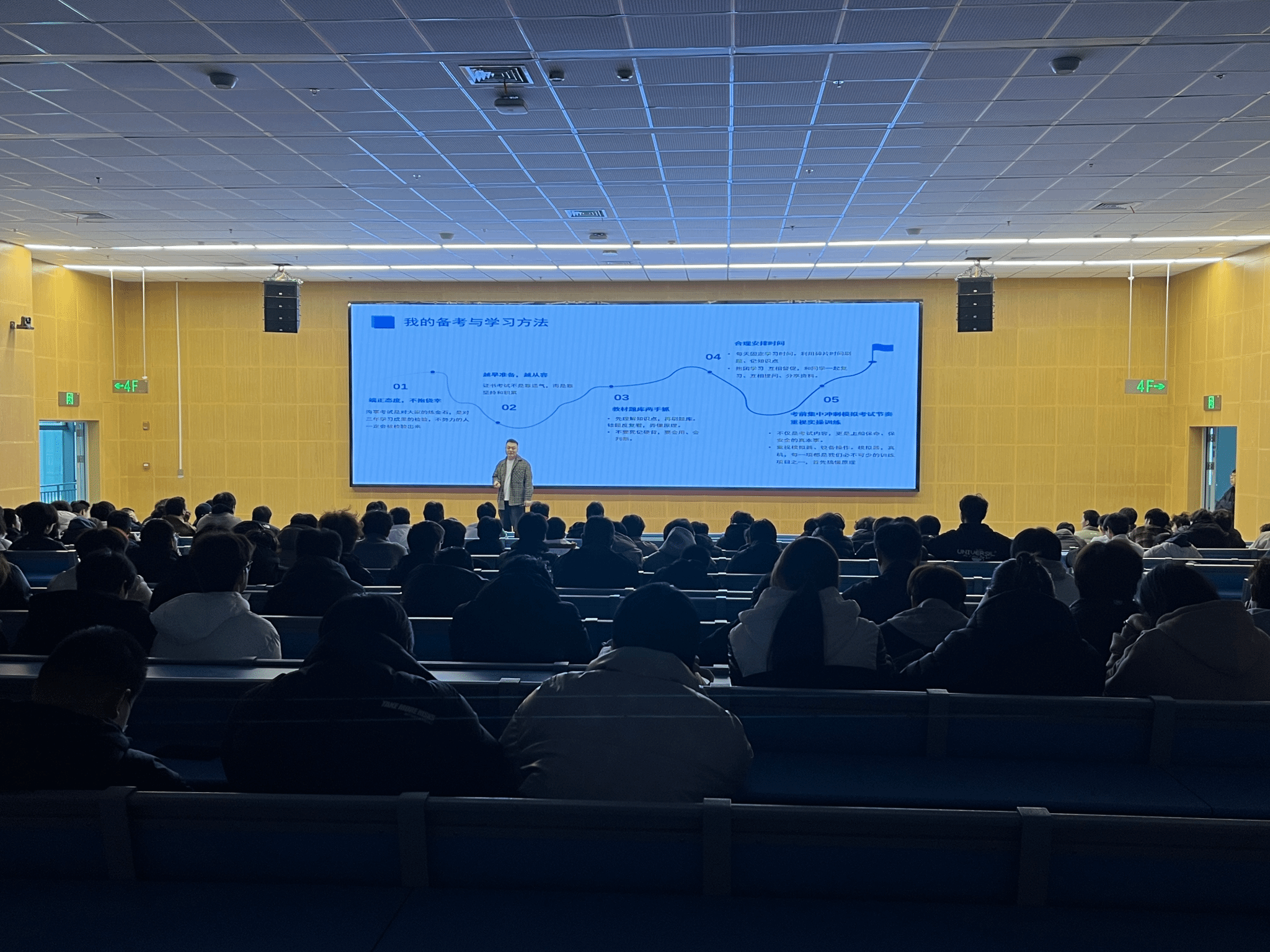 讲座以“以证为帆,逐梦航海”为主题,王迟学长结合自身成长经历,从“为什么航海类专业学生一定要考取三副/三管证书”切入,深入分析了职务船员的薪资优势、全球性就业前景以及证书作为从业硬性门槛和专业能力认可的重要性。他强调,海事局考证是对三年学习成果的检验,必须端正态度、提早准备,通过理解知识点、反复刷题、重视实操训练等方法夯实基础。