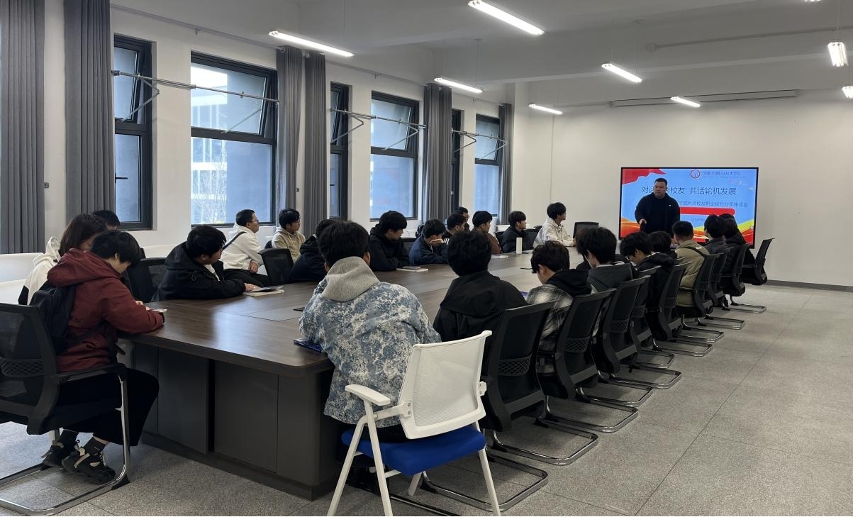 座谈会上,叶点校友结合自身多年的行业经验,围绕轮机英语的学习方法与在实际工作中的应用、工作态度与业务能力以及如何把握职业发展机会等方面进行了深入细致的分享。他特别强调,在校期间要沉下心来,优先考取相关职业证书,为未来职业发展打下坚实基础。他勉励同学们坚定行业信心,在轮机工程领域坚持深耕,不断提升自身专业素养。