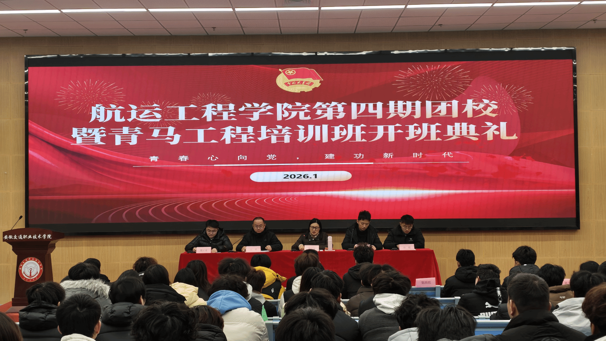 为深入学习贯彻习近平新时代中国特色社会主义思想和党的二十届四中全会精神,落实习近平总书记关于青年工作的重要思想,进一步加强青年马克思主义者思想教育,1月6日,航运工程学院第四期团校暨“青年马克思主义者培养工程”(以下简称“青马工程”)培训班开班典礼在图书馆四楼东报告厅举行。学院党总支副书记刘元元、学院学生党支部教师代表、团委老师出席,全体入团积极分子及青年学生骨干共计100余人参加开班典礼。开班典礼由学院团委负责老师王晨主持。