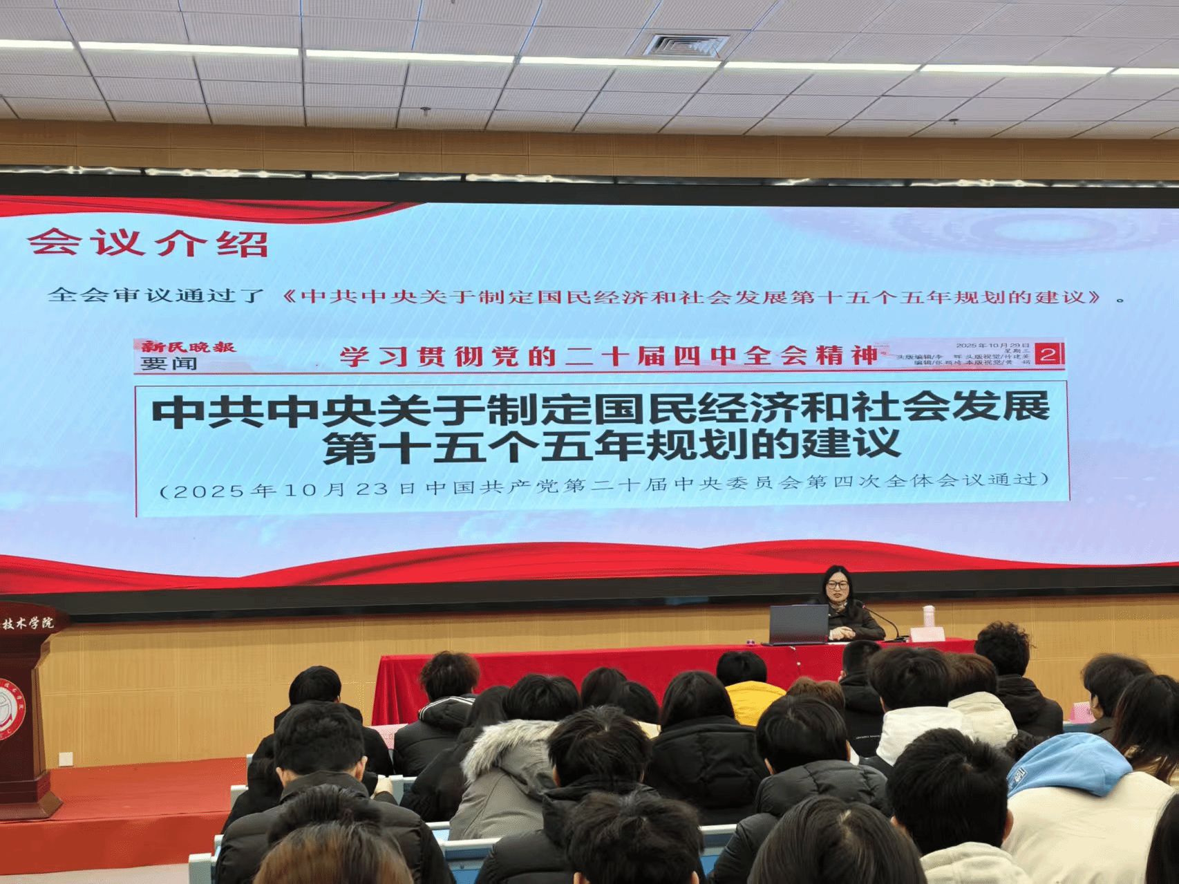 开班式结束后,刘元元为全体学员讲授开班第一课——《深入学习贯彻党的二十届四中全会精神》。课程紧紧围绕全会召开的时代背景、核心要义与实践要求,结合航运领域发展与青年成长实际,深入阐释了全会精神的重大意义与战略部署,并引导青年学子围绕学习党的二十届四中全会精神思考新时代青年何为。学员们专注听讲、认真记录,在系统学习中进一步深化了对全会精神的理解。