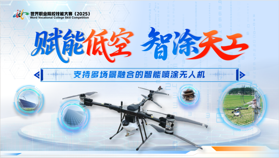8月27日,2025年世界职业院校技能大赛总决赛争夺赛航空交通运输赛道(高职1组)在成都航空职业技术大学圆满落幕。经过五天激烈角逐,我校航空与低空经济学院无人机专业代表队凭借“智涂天工-自研Y600多功能智能喷涂无人机”项目脱颖而出,荣获大赛银奖。