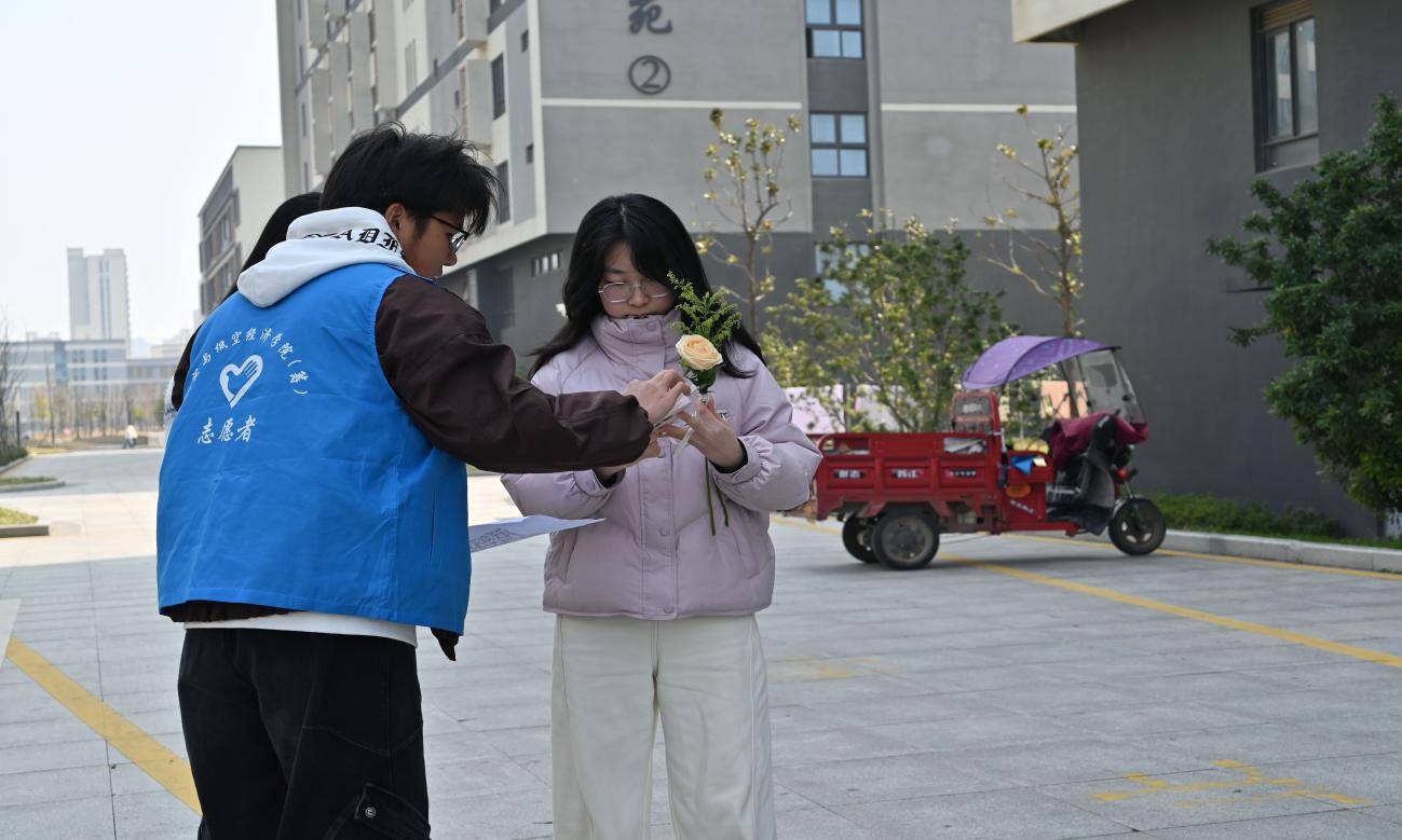 一朵鲜花,一句问候,一次致敬。活动不仅为校园女性送上节日惊喜,也让学生们在献花中学会感恩、在互动中理解尊重,让每一份女性力量都被看见、被铭记。(供稿:周洪如;审核:许嫣然)