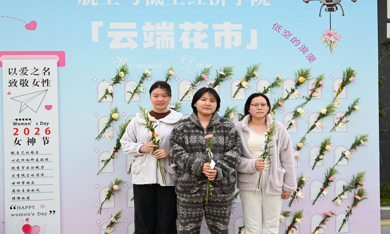 此外,学院还设置了融入航空元素的特色鲜花墙,吸引众多学生驻足打卡。大家在花墙前开心留念,用镜头定格下一张张灿烂的笑脸,为节日增添了一抹亮丽的色彩。