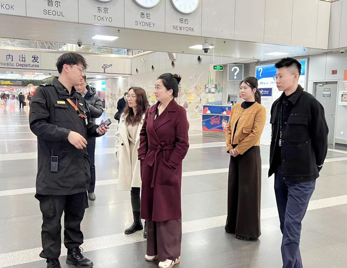 会后,校领导一行实地走访了首都机场T2、T3航站楼的地服、安检、海关等工作场景,深入了解学生实习岗位内容与操作流程,并专程前往实习学生宿舍,细致察看住宿条件、消防安全及生活配套设施。在慰问过程中,副校长殷切寄语实习学生,希望珍惜此次在首都机场的实践机会,严守岗位规章、苦练实践技能,锤炼职业品格以扎实的专业素养展现我校学子风采,同时注意人身安全、合理安排作息,做到工作与学习两不误、成长与安全两促进。