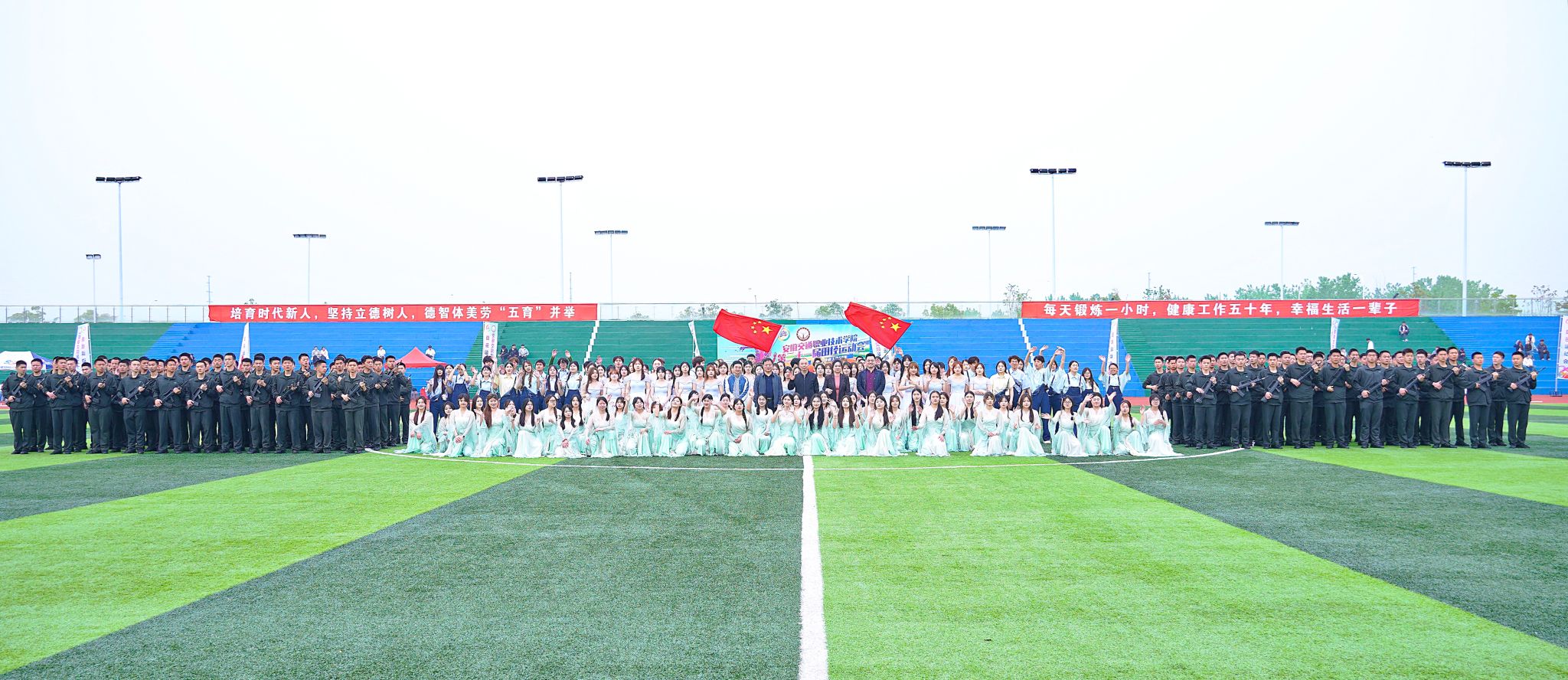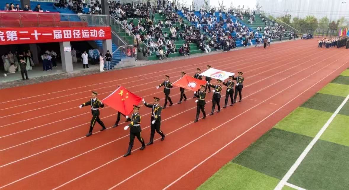 紧随其后,鲜花彩旗队手持缤纷花束与飘扬彩旗,为赛场注入跃动的色彩;教职工代表队步伐稳健,尽显师者风范;各二级学院代表队身着统一服饰,口号嘹亮,青春气息扑面而来;志愿者、裁判员与后勤服务代表队依次列队进场,默默奉献的身影也成为赛场上一道独特的风景。