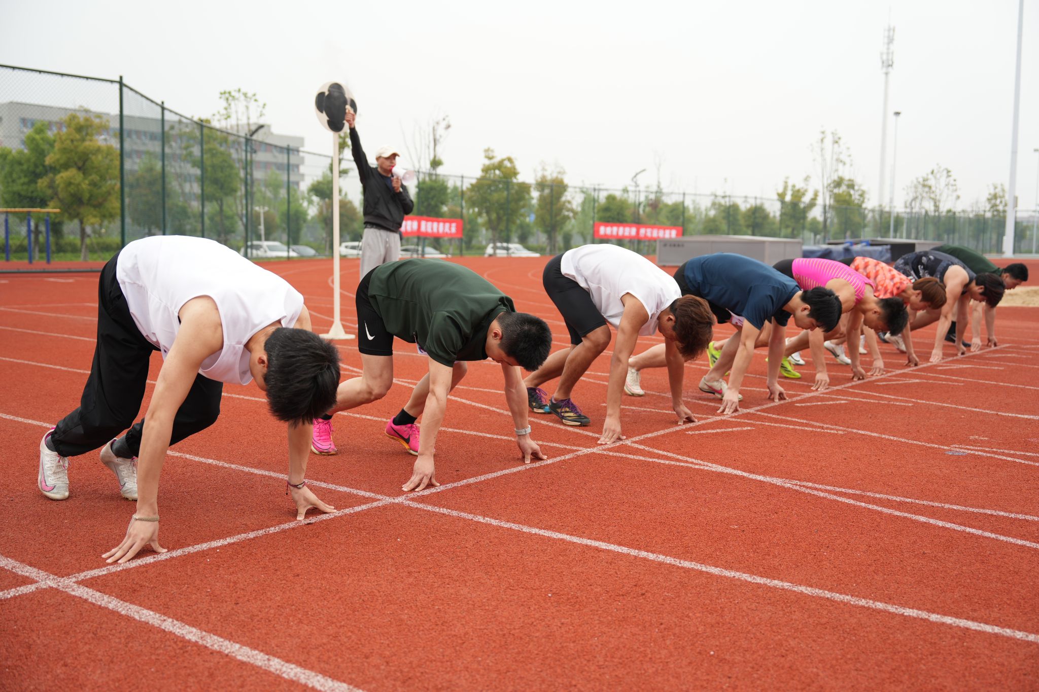 短跑赛道上,发令枪响,运动员如离弦之箭疾驰而出。风声呼啸耳畔,脚步叩击跑道,每一次摆臂、每一次蹬地都凝聚着力量与速度。看台上的呐喊声此起彼伏,汇成一片助威的海洋。