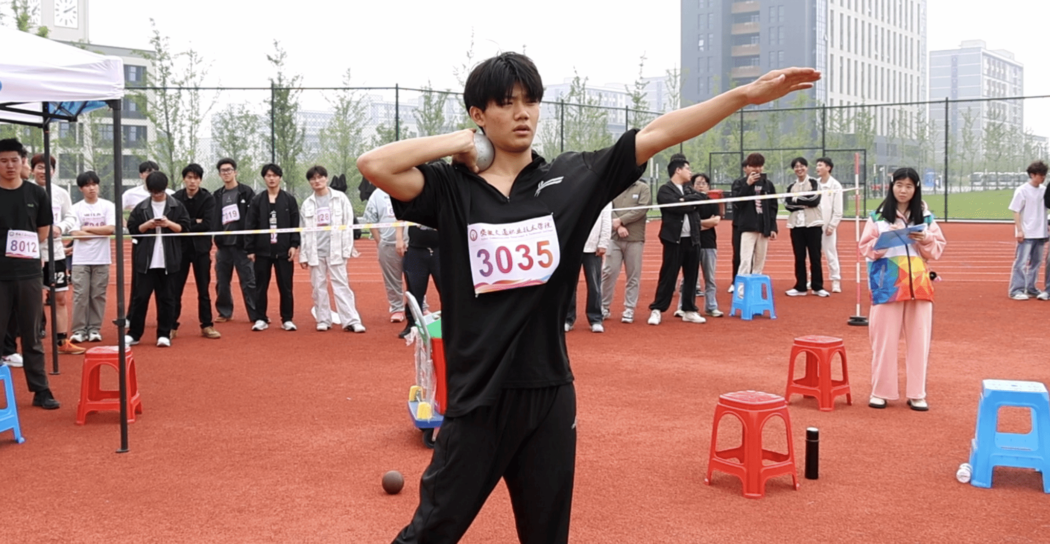 跨栏、跳高、跳远赛场上,学子们助跑、腾跃、跨越,以无畏之姿挑战极限。跨栏时如猎豹腾跃,轻盈过障;跳高场上不断冲击新高度,一次次腾空而起,诠释着“更高、更快、更强”的体育追求;跳远区,他们奋力一跃,在空中划出优美弧线,落地瞬间,是对自我极限的突破。投掷区,运动员聚力于臂,奋力一掷。沉重的铅球在空中划出有力弧线,带着青春的力量飞向远方。每一次投掷,都是力量的爆发,也是意志的彰显。