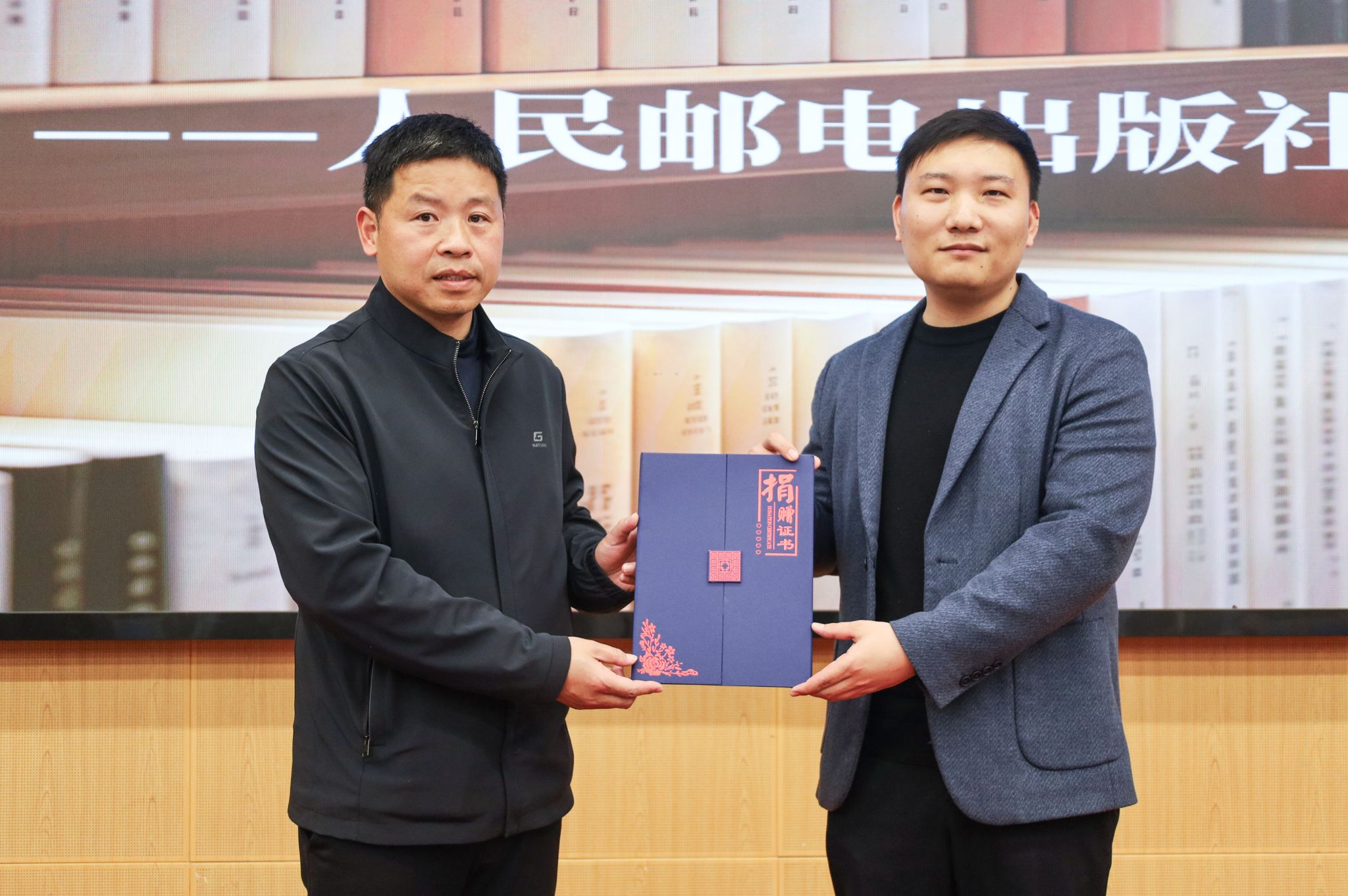为传递阅读力量,开幕式上特别举行榜样捐书仪式,同步启动二级学院图书公益接力活动。人民邮电出版社、合肥市新华书店向学校捐赠优质图书,图书馆副馆长胡勇为代表单位颁发捐赠证书。社会力量积极参与校园书香建设,多方携手共建阅读阵地,推动书香从校园辐射社会,进一步浓厚全民阅读的氛围。