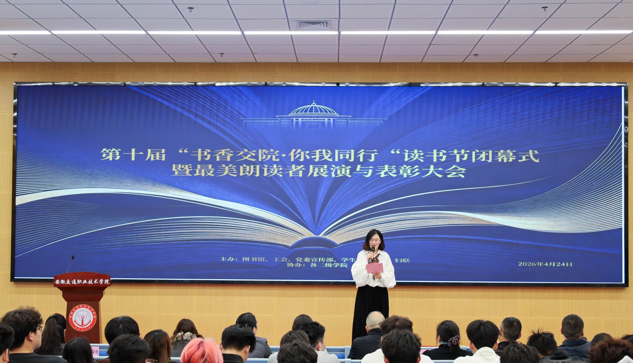 闭幕式上,“经典诵读·最美朗读者” 展演环节亮点纷呈。教师组以《青春中国》《百合花开》抒发家国情怀与坚守信念;学生组带来《面朝大海,春暖花开》《将进酒》《写给春天的诗行》等作品,声情并茂、感染力十足,充分展现交院师生昂扬向上的精神风貌。活动现场为 10 位 “最美朗读者” 颁奖,以榜样力量引领校园阅读风尚。