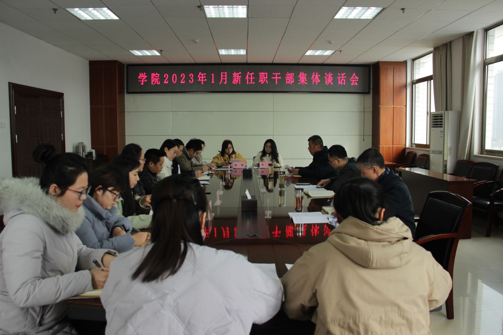 为进一步加强干部教育管理,2月16日下午,学院召开新任职十一名干部任前集体谈话会议。院党委副书记杨菲铃主持会议并讲话,党委委员、纪委书记季传友进行任职前廉政谈话,党委委员、组织人事处处长龚桢宣读任职文件。