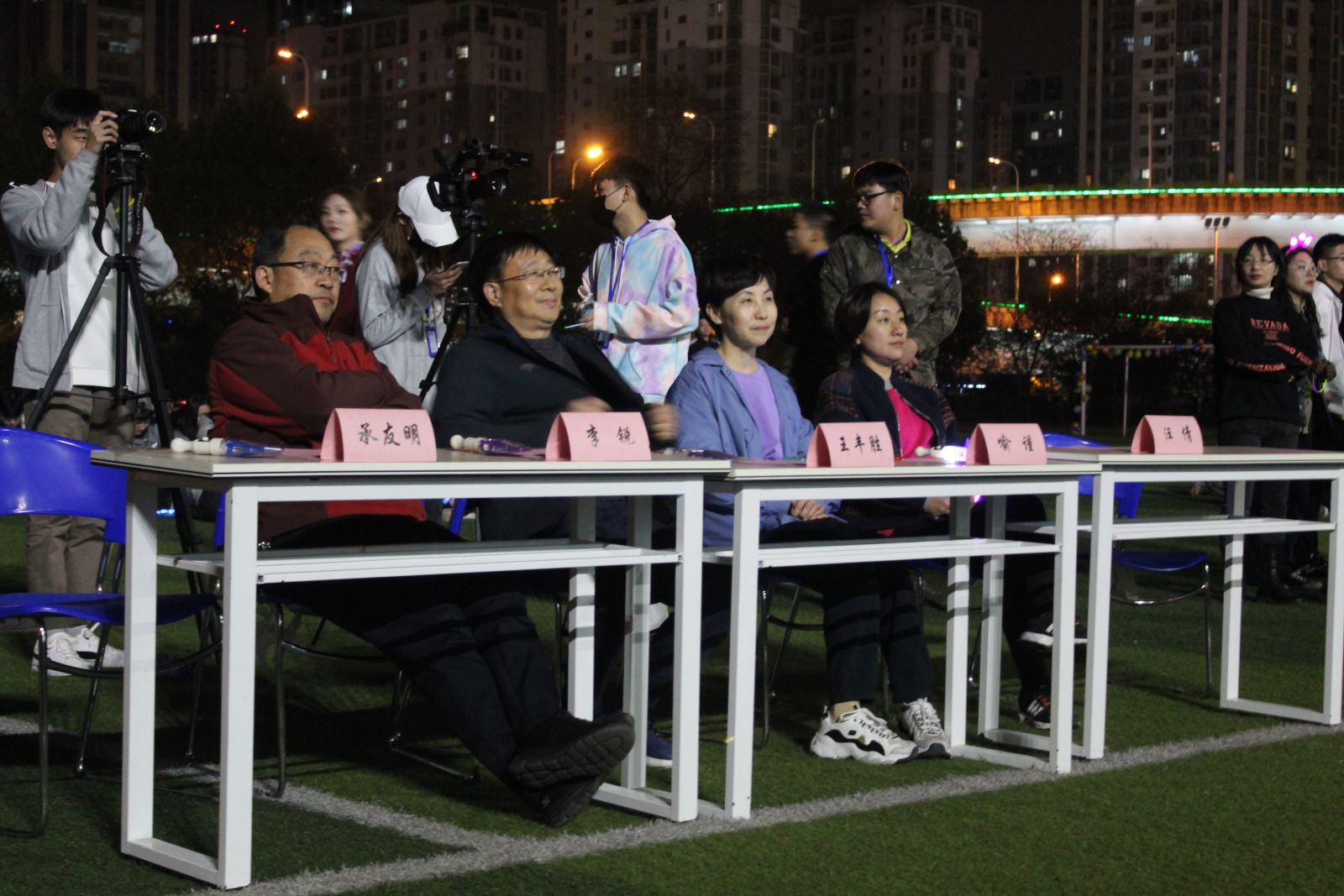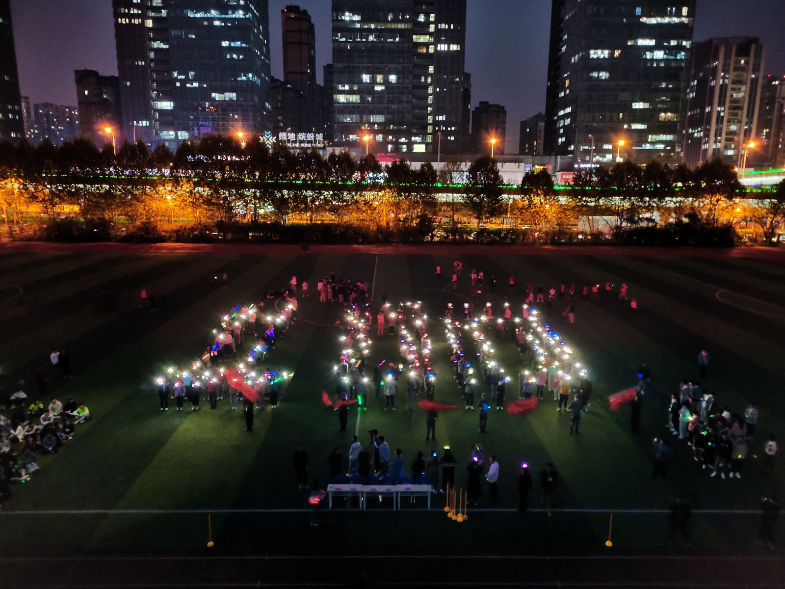 院系领导亲自领跑,将承载着青春、活力、无畏、拼搏的接力棒交接给青年学生,让他们用自己坚实的步伐继续恣意青春,激情奔跑。他们“走出宿舍,走下网络、走向操场”,化身荧光精灵,汇成一条耀眼的银河,把整个操场装点成一个荧光闪耀的欢乐海洋,涌动的同学在跑道上形成了一道亮丽的风景线。