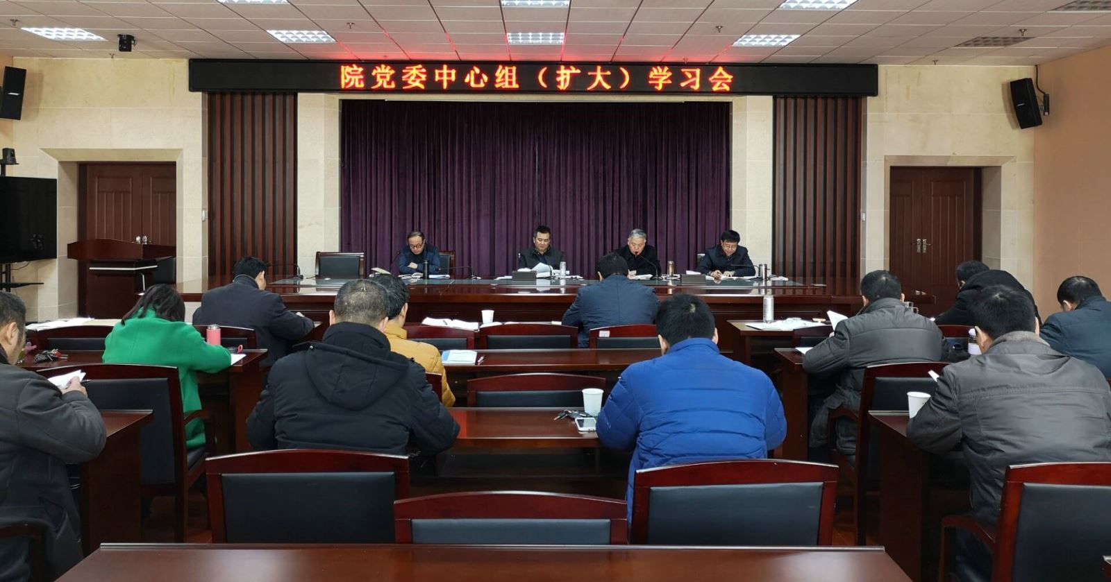 12月29日上午,院党委召开中心组(扩大)理论学习会,院领导、全体中层干部参加会议。院党委书记孙顺利主持会议并总结讲话。