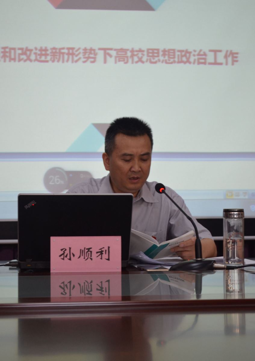 表彰仪式后,院党委书记孙顺利同志作党课报告,他以加强和改进新形势下高校思想政治工作为主题讲授党课,并同与会人员分享了26日上午厅党组书记、厅长施平在省厅党课报告会上所作的党课精神。孙顺利同志紧扣立德树人这一中心环节,从六个方面展开授课,即高校思想政治工作的战略定位;高校思想政治工作根本上是做人的工作;高校思想政治工作要坚持社会主义办学方向;高校思想政治工作要坚持师生两大群体并重;推进高校思想政治工作的创新发展;加强和改进党对高校思政政治工作的领导。授课过程中,孙顺利同志紧密结合学院工作实际,并举出大量事例帮助与会人员理解领悟。