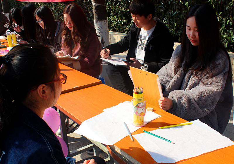 活动邀请了城信系多名擅长绘画的同学,面向全院女性,进行现场肖像绘画创作。师生们踊跃参加,她们面带微笑,端坐在春日午后的暖阳下。而绘画的同学发挥个人所长,有的以简笔、素描,有的以漫画、卡通等形式,画出了女生们清秀俏丽的容颜和可爱灵动的气质。