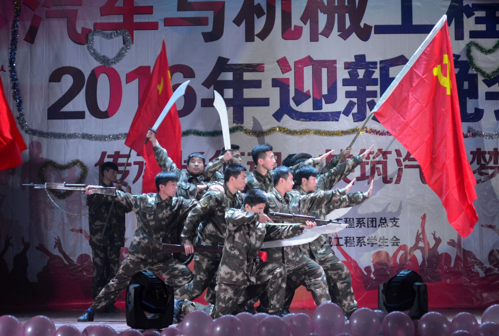 张弛有力,活力四射的开场舞为晚会拉开序幕,相声《我的大学》通过反面事例呼吁大学生努力学习;以尤克里里为伴奏,男女双方深情演绎的情歌对唱,使现场呼声不断;长袖善舞,曼妙婀娜,女生表演的古典舞将同学们带入佳境,体会韵律舞动的美好。歌曲串烧,爆笑小品,红色舞台剧等节目轮番上场,在带来欢笑的同时,也能静静欣赏艺术,感受红军两万五千里长征路的艰辛和困阻。精心改编的小品《西游歪传》嗨暴全场,台词结合当下网络流行词汇再配上动人的爱情故事,使得小品新颖“接地气”,赢得了同学们阵阵掌声和欢呼。一首雄浑高昂,激情热血的《中国军魂》大合唱为晚会画上圆满的句号。