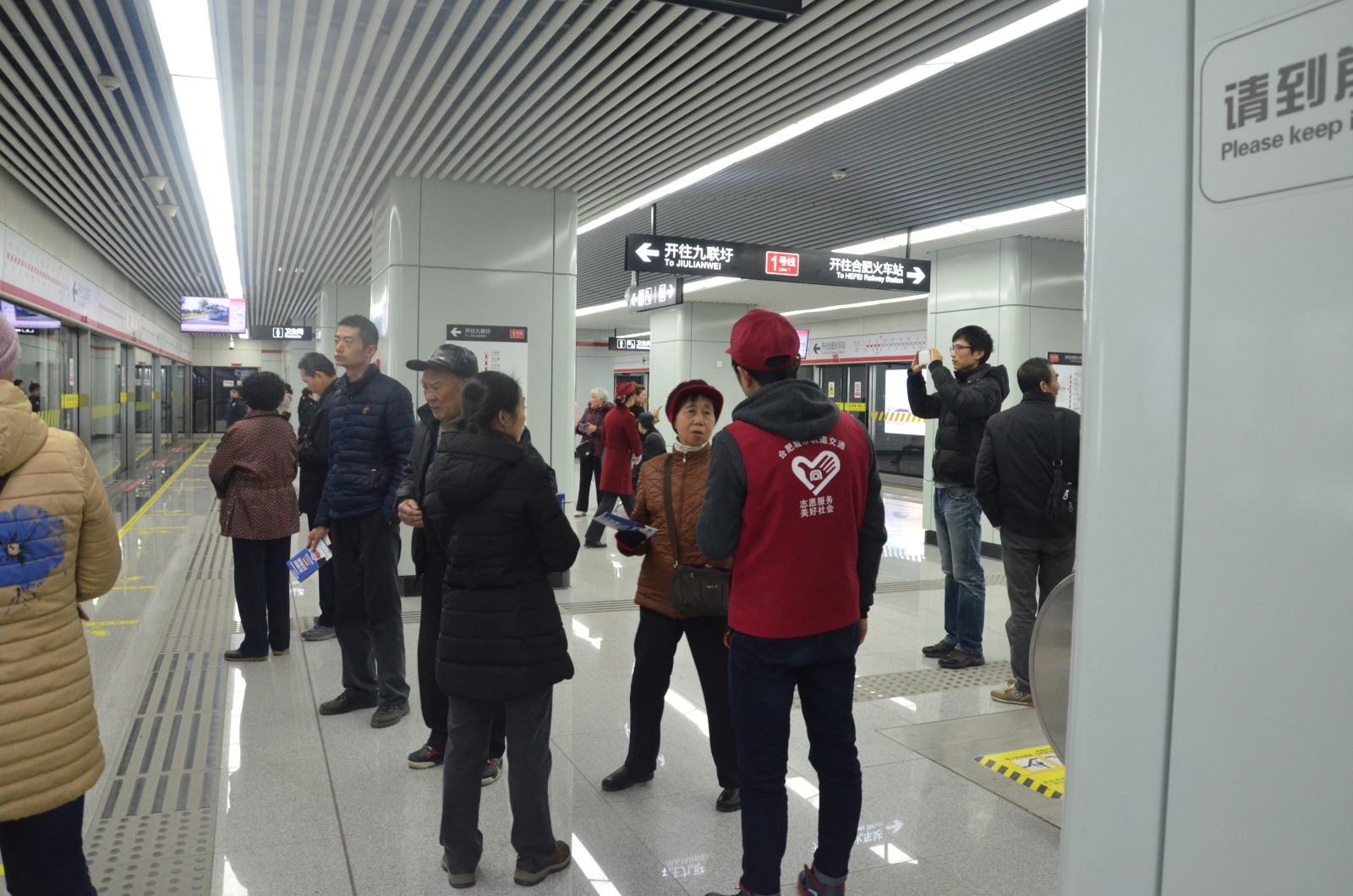 本次志愿服务活动范围涵盖合肥轨道交通1号线23个车站,工作内容包括值守车站扶梯,确保乘客安全乘梯;按照车站规定的路线,指引乘客进出站,并回收试乘券;值守屏蔽门,引导乘客排队上下车,确保站台乘客人身安全等。志愿者们分成早班、中班轮流上岗。