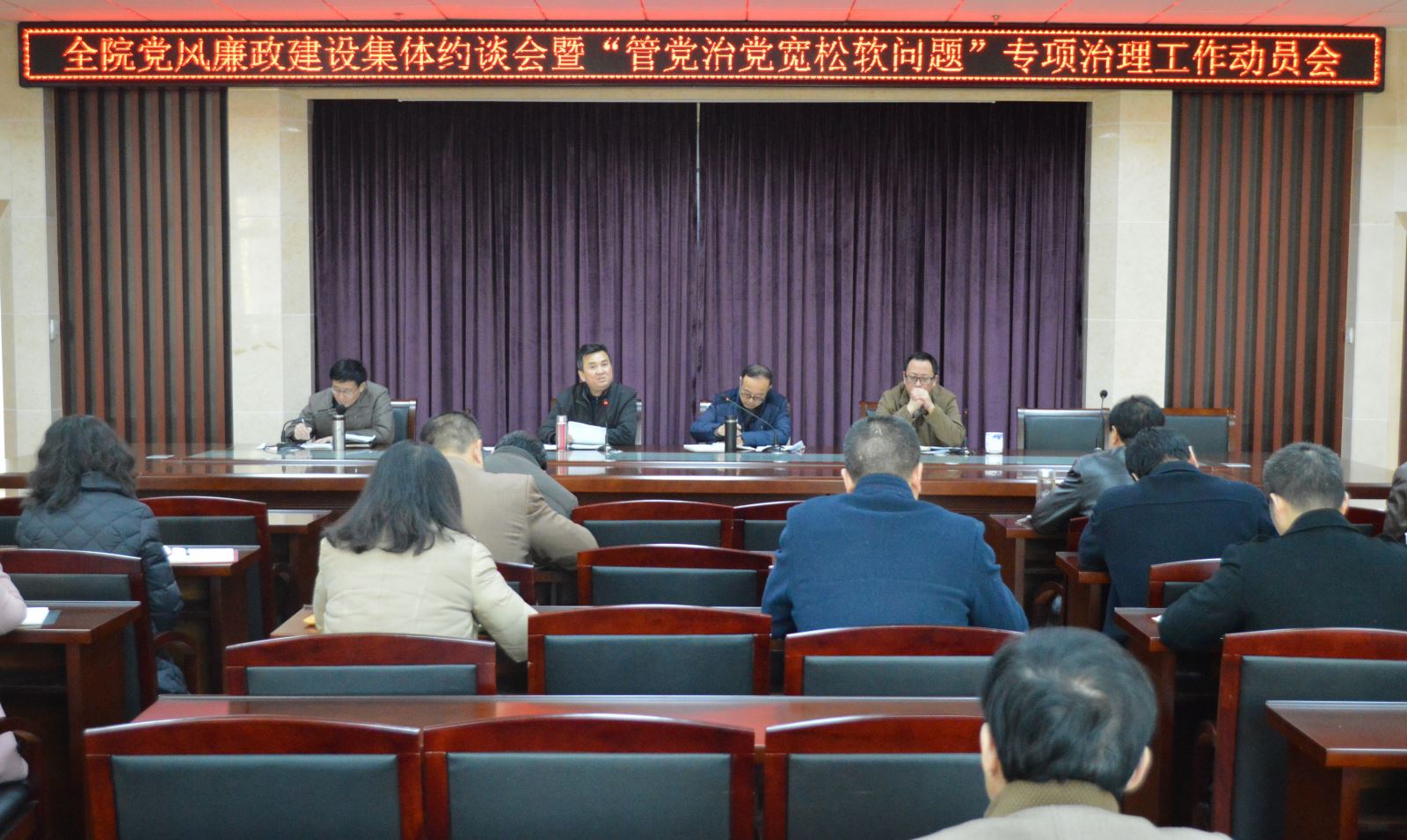 12月2日下午,院党委召开动员会,全面部署“管党治党宽松软问题”专项治理和“讲看齐、见行动”学习讨论工作。院领导孙顺利、陈明、王丰胜、李亮,全体中层干部,校办产业主要负责人出席动员会,院党委副书记、纪委书记陈明同志主持会议。