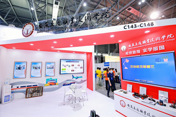 轨道交通、航空、航海、道路建设......作为安徽省唯一一所交通运输类高职院校,安徽交通职业技术学院展台上集纳了多种交通元素,展现了学校完善的“车、轨、邮、海、陆、空”现代综合交通专业人才培养体系。