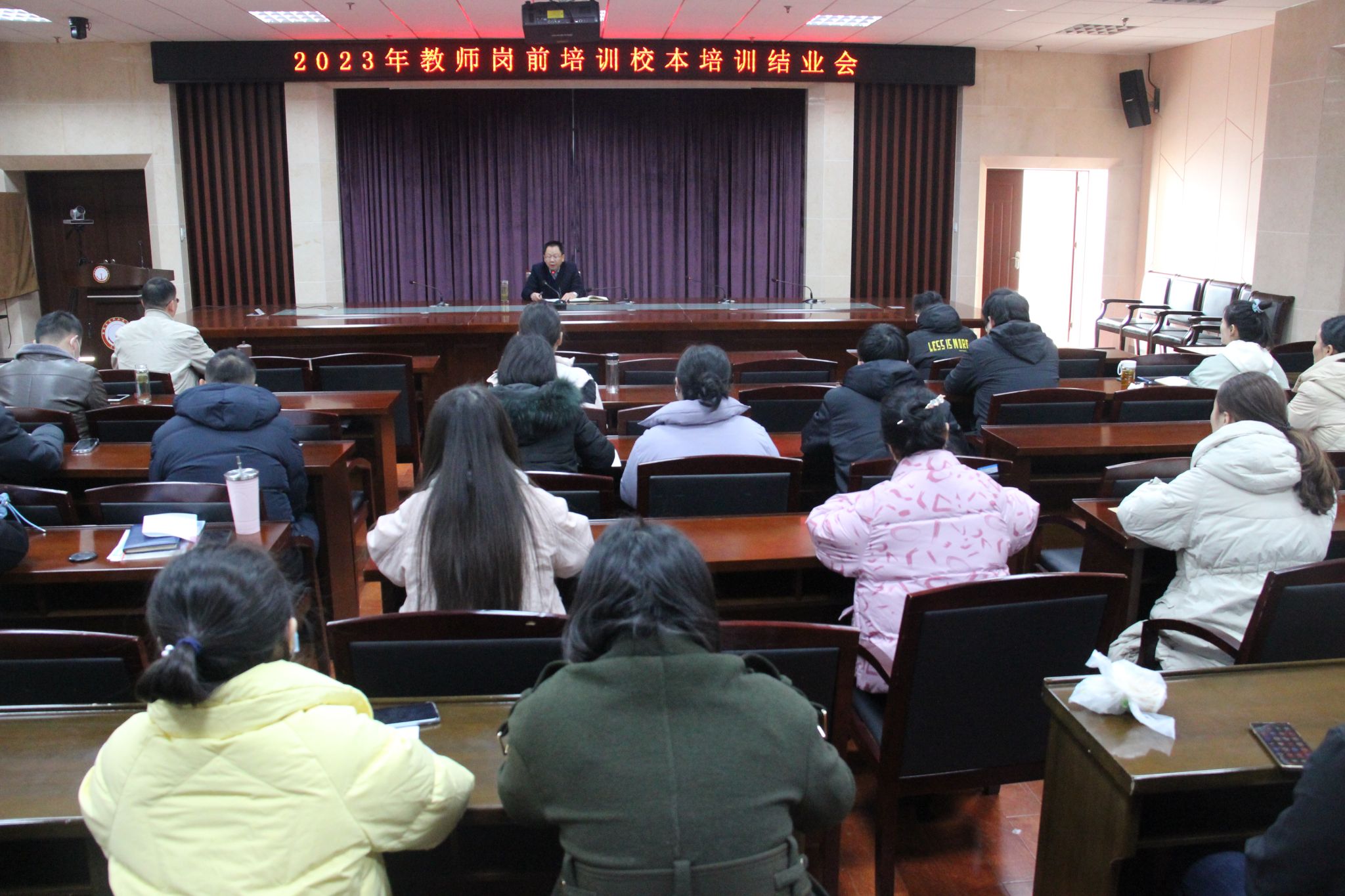 为落实立德树人根本任务,让新入职教师尽快适应工作环境和岗位要求,加强教师队伍建设,12月3日上午,学院举行2023年教师岗前培训校本培训结业会。院党委副书记杨菲铃主持会议并讲话。院党委委员、组织人事处处长龚桢出席会议,50余名岗前培训教职工参加会议。