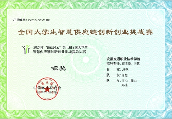 6月2日至3日,2024年“链战风云”第七届全国大学生智慧供应链创新创业挑战赛总决赛于线上举行,由我院管理系郭洁筠、李慧两位老师指导,何慧、郑浩、周锐、汪悦四名同学组成的UP队,一路过关斩将,最终取得全国高职组银奖的好成绩。
