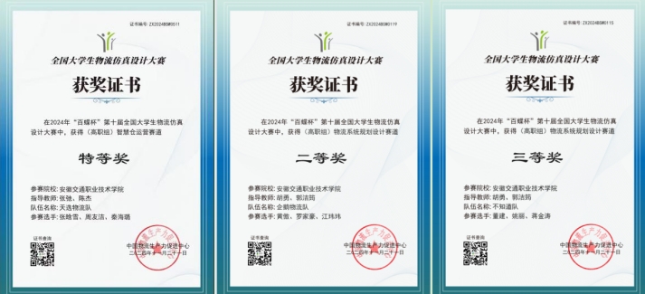 11月9日至10日,由中国物流生产力促进中心主办,上海百蝶教育科技有限公司承办,中国供应链产教联盟协办的2024年“百蝶杯”第十届全国大学生物流仿真设计大赛总决赛落下帷幕。我院管理工程系胡勇、郭洁筠、陈杰、张弛四位老师带领的三支队伍(1队:张晗雪、周友洁、秦海璐,2队:黄傲、罗家豪、江玮玮,3队:董建、姚丽、蒋金涛)分别获得特等奖、二等奖、三等奖的优异成绩!