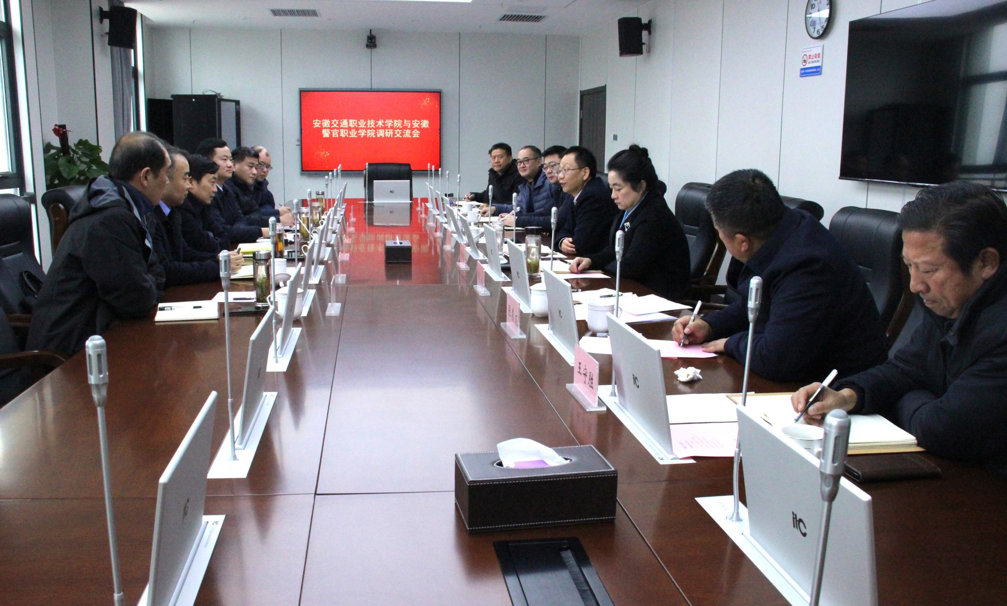 12月25日,安徽警官职业学院党委书记桂勇、副院长方欢欢等一行6人来我院开展调研交流,院党委书记杨菲铃主持会议并讲话。院党委委员、副院长梁洪波及相关部门负责人参加会议。