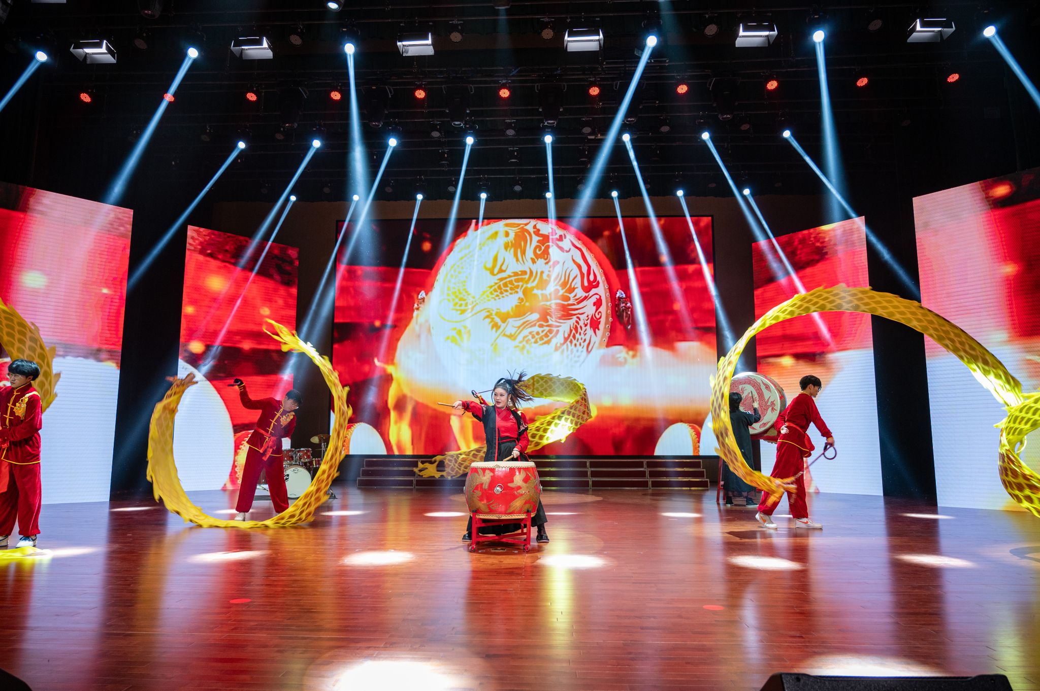 民族的就是世界的,民族乐器合奏奏响了对中华文明的深情咏叹,更激荡着新时代的活力与激情。大学生艺术团与李思琪、吴嘉玥两位老师联袂奉献了开场表演《鼓舞盛世 灵蛇报春》。
