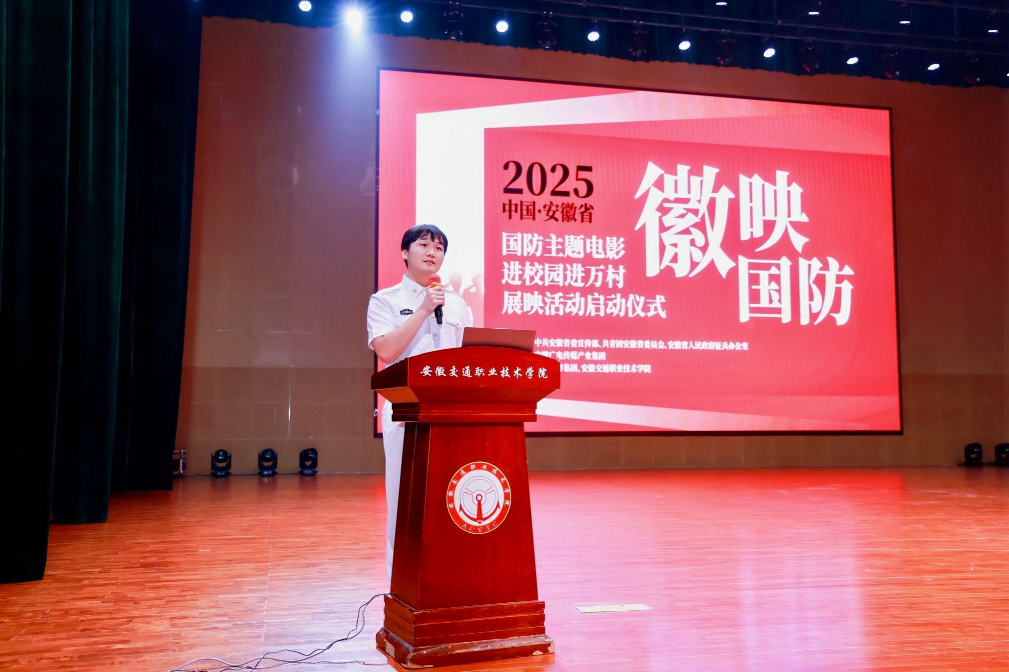 5月29日下午,由中共安徽省委宣传部、共青团安徽省委员会、安徽省人民政府征兵办公室指导,安徽广电传媒产业集团主办,安徽交通职业技术学院与安徽电影集团联合承办的2025年“徽映国防”安徽省国防主题电影进校园进万村展映活动启动仪式在学院新桥校区经世大礼堂隆重举行。团省委副书记周宇,学院党委副书记、院长孙晓雷,省委宣传部宣教处一级调研员袁校斌、省征兵办公室上校参谋张峰、安徽电影集团董事长虞咏等领导嘉宾共同启动2025年“徽映国防”万场展映活动。